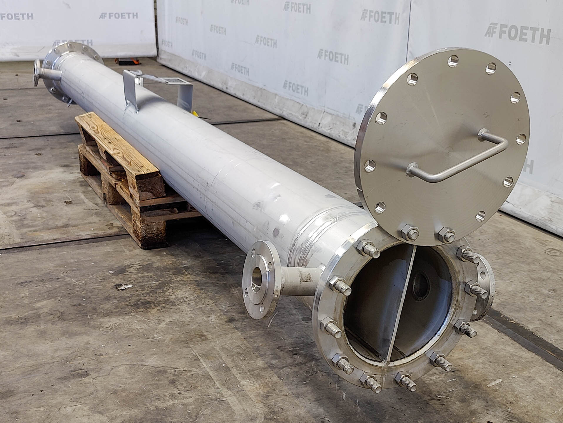 General SKU212T508 MakeApparatebau AG LocationBarneveld TypeNachkondensator 260.13 Pressure Working pressure shell6 Bar Working pressure tubes3.2 Bar Main Features Shell (Material)Stainless steel Tube (Material)Stainless steel Surface8 m2 Specified Features - Shell and tube heat exchanger MaterialStainless steel 1.4571 (316Ti) Heat exchangercheck Verticalcheck Notified body(TÜV) Heating surface8 m² Tube capacity222 Ltr. Max. temperature-10/200 °C Shell capacity68 Ltr. Shell diameter315 mm Shell length4000 mm Max. temperature-10/200 °C Information No.W6992 Year of construction2001 Floorspace4,5x0,3 m Total height0,5 m Weight330 kgCatalysts & fillersFeed additivesPaper & otherSolventsDetergent & surf.Other pharmaceuticsCosmeticsOrganicsE-waste & metalFood additivesSugarLubricants & oleoDairyAnimal feedOther feedConfectionerySolid pharmaceuticsBeveragesDyes ...