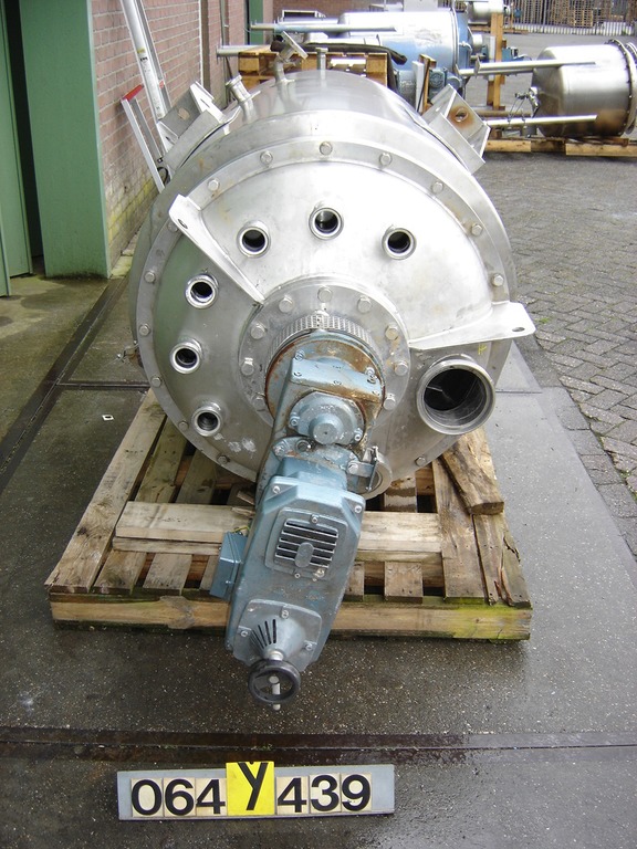 General SKU107W545 MakeVevey S.A. No.467 Year of construction1970 LocationBarneveld Pressure Working pressure2 Bar Vacuum possiblecheck Working pressure jacket5 Bar Main Features MaterialStainless steel Volume4000 Ltr. Motor6.6 KW Specified Features - Paddle dryer Paddle dryer(1x) Capacity4000 Ltr Trough sizesdia. 1400x3000mm Outletdia. 350mm With jacketcheck External heating spiral(180 Ltr) Shaft can be heated(1020 Ltr) Max. temperature-10/+200 Degr. C. With adjustable packing glandscheck Motor6,6 KW, 500 Volt (Ex) MaterialStainless steel Information ATEX compatiblecheckCatalysts & fillersFeed additivesDiscountOther pharmaceuticsCosmeticsSugarAnimal feedOther feedConfectionerySolid pharmaceuticsDyes & pigmentsBiopharmaceuticalAPIMinerals & inorganicAgrochemicalsBiotechnologyOther chemicalPaddle dryersStarchFine chemicalsOintmentsGeneric medicinesPowdered food ...