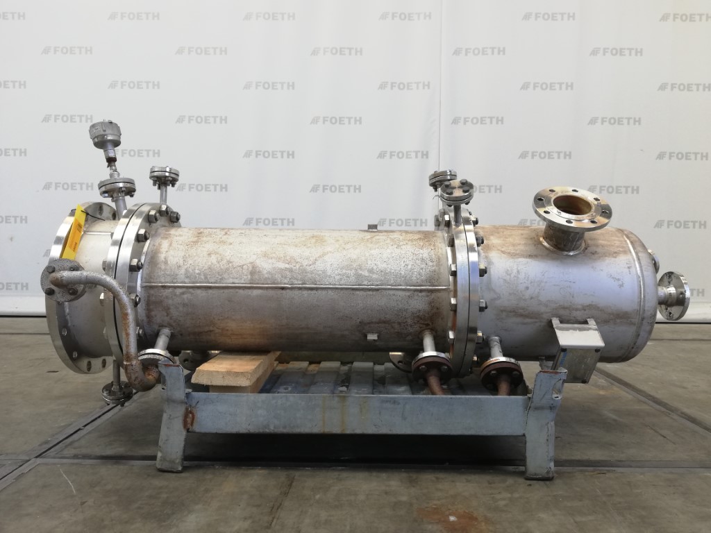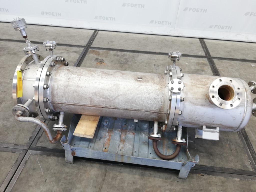General SKUR0365 LocationBarneveld MakeBuss SMS TypeRieselfilm Gaskuhler Pressure Working pressure shell4 Bar Working pressure tubes0.5 Bar Tubular vacuum possiblecheck Main Features Shell (Material)Stainless steel Tube (Material)Stainless steel Surface3.15 m2 Specified Features - Shell and tube heat exchanger MaterialStainless steel 1.4541 (321) Heat exchangercheck Verticalcheck Heating surface3,15 M2 Number of tubes:25 Tube diameter44.5mm Tube length1000mm Wall thickness tubes2mm Max. temperature200 degr. C Shell diameter400mm Shell length1000mm Information No.22.11.6351/3 Year of construction1994 Floorspace2,0x0,8 M Total height0,8 M Weight500 KgCatalysts & fillersFeed additivesPaper & otherSolventsDetergent & surf.Other pharmaceuticsCosmeticsOrganicsE-waste & metalFood additivesSugarLubricants & oleoDairyAnimal feedOther feedConfectionerySolid pharmaceu ...