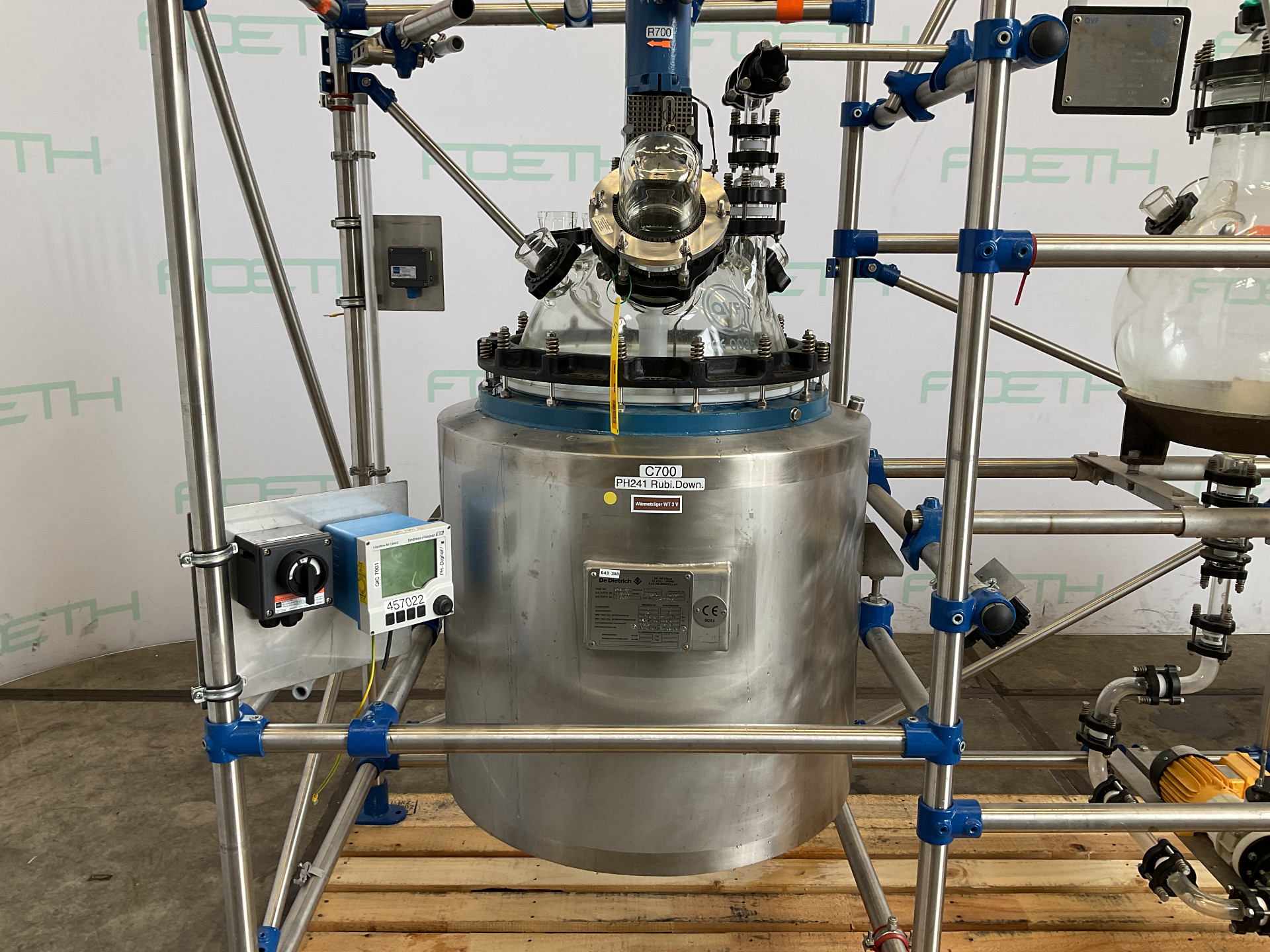 General SKU327X690 LocationBarneveld CEcheck MakeDe Dietrich / QVF Pressure Working pressure0.5 Bar Vacuum possiblecheck Working pressure jacket10 Bar Vacuum possible jacketcheck Main Features MaterialGlass Volume80 Ltr. Motor0.55 KW Specified Features - Glass-lined Reactor MaterialGlass - Enamel (3009U) Glass Reactors Reactorcheck Capacity63 l. (80 l.) Vessel sizesø 750 x 700 mm Dished bottomcheck Top connectionscheck With jacketcheck Max. temperature—60 / 200 °C With propellor stirrercheck Motor0,55 kW (400 V, 1410 rpm, (Ex)) Speed mixing shaft0—600 rpm Information Type80 l No.69305 Mounted on legscheck on frame With switchcheck Floorspace2,20x0,90 m Total height2,40 m Weight450 kg Extra SpecificationsWith glass bowl, pumpGlass-lined ReactorsNew arrivalsDe DietrichReactors > Glass-lined ReactorsNew arrivalsBrand > De Dietrich What you can expec ...