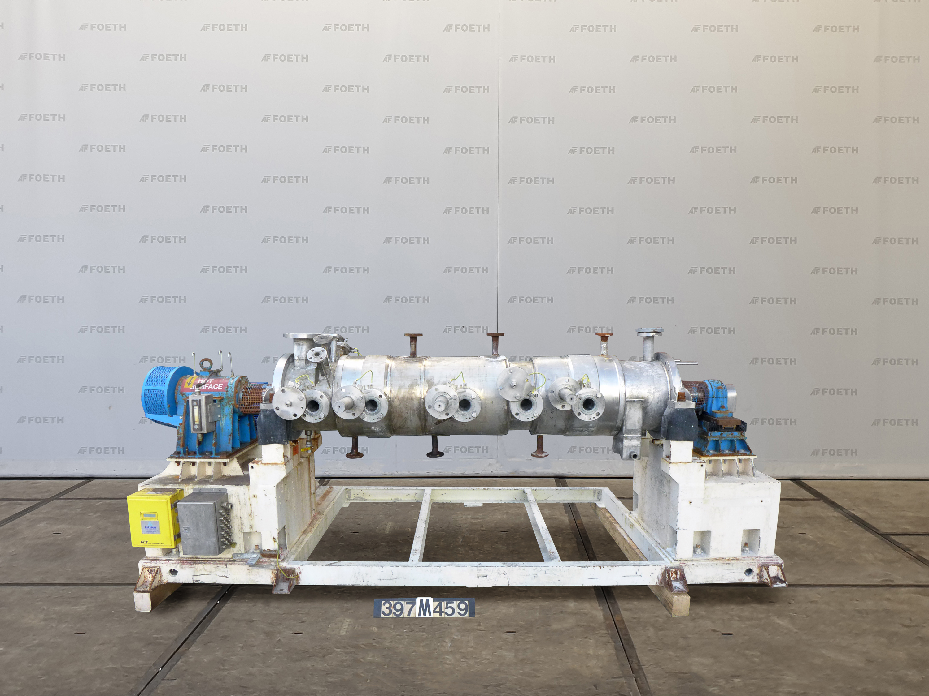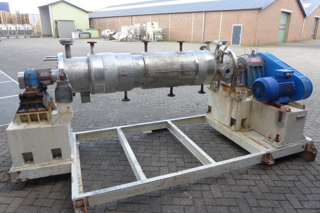 General SKU045C405 MakeHalvor Forberg A/S Larvik TypeF-1000 No.1904 Year of construction1997 LocationBarneveld Pressure Working pressure0.5 Bar Vacuum possiblecheck Working pressure jacket16 Bar Main Features MaterialStainless steel Volume1000 Ltr. Motor30 KW Specified Features - Paddle dryer Paddle dryer(1x) Double shaftcheck Capacity3500 Ltr, Useful capacity 1000 Ltr Trough sizes1350x1695x1400mm InletDia: 300mm ManholeFull acces via door OutletDia: 590mm With jacketcheck 31 Ltr. Max. temperature150°C With adjustable packing glandscheck Motor30 KW, 380/660 Volt Speed mixing shaft± 32 Rpm MaterialStainless steel 1.4401 (316) Information Floorspace3,7x2,3 M Total height3,4 M Weight10.000 KG Extra Specifications-- RECONDITIONED -- Catalysts & fillersFeed additivesDiscountOther pharmaceuticsCosmeticsSugarAnimal feedOther feedConfectionerySolid pharmaceuti ...