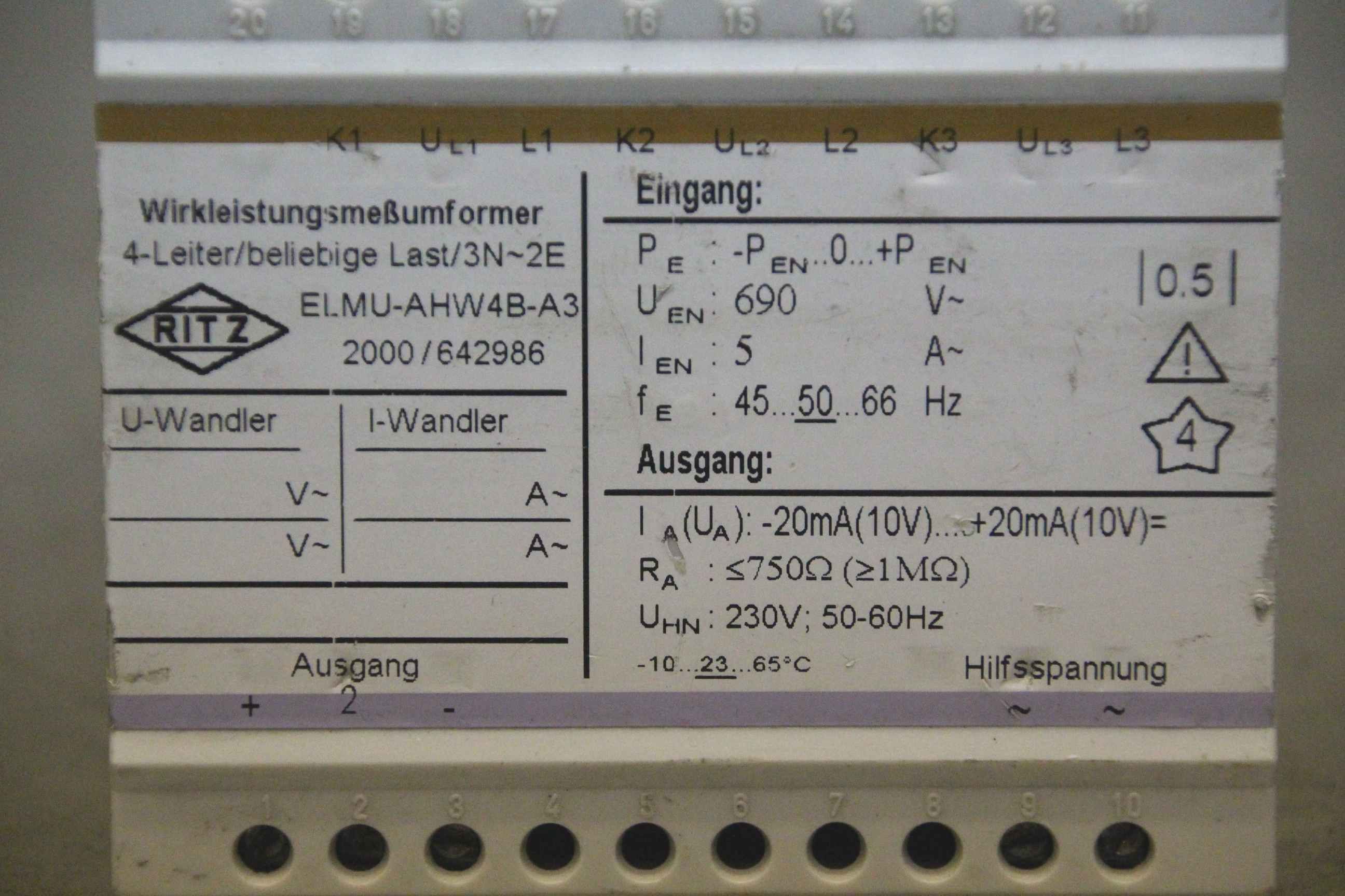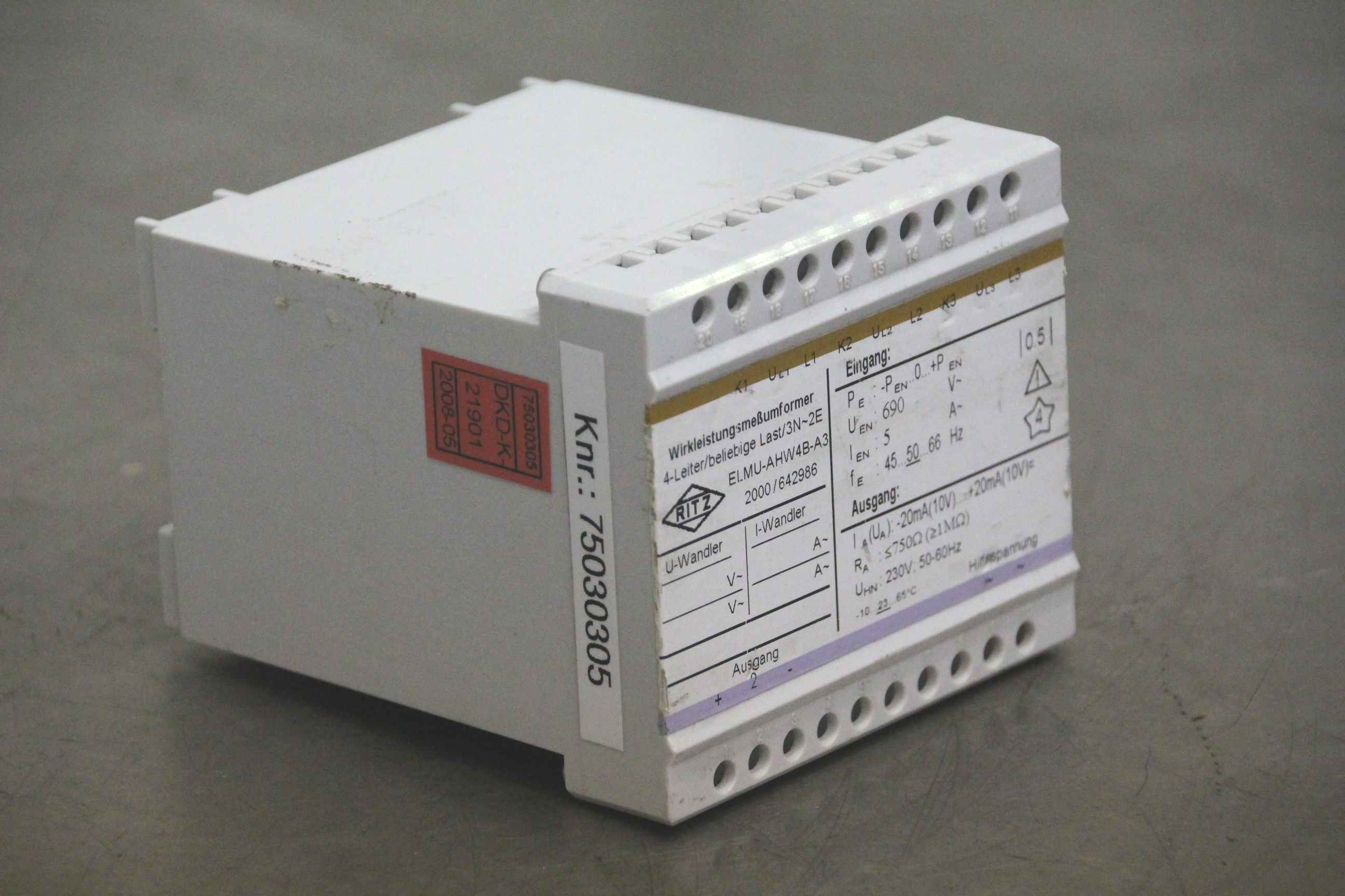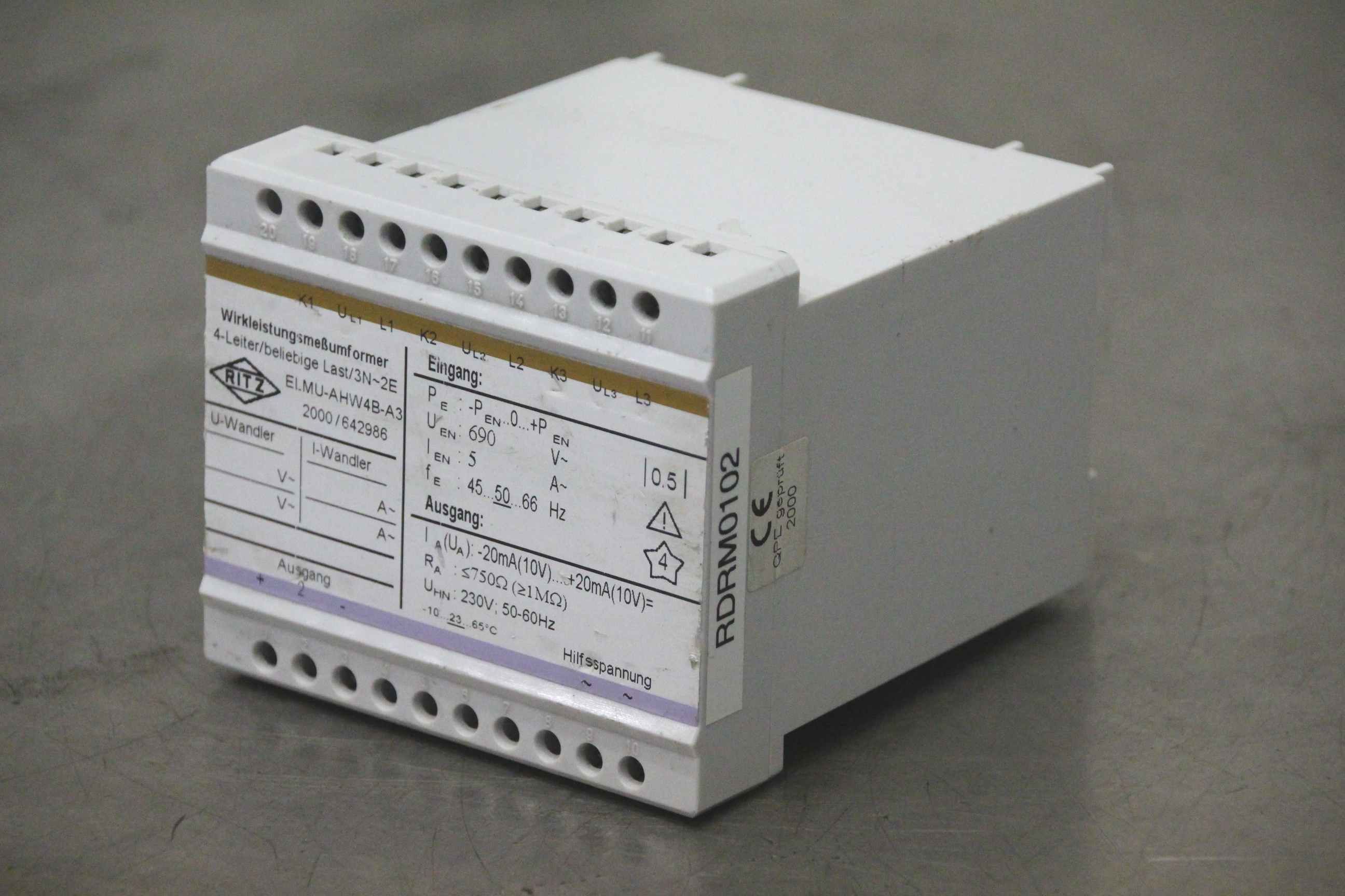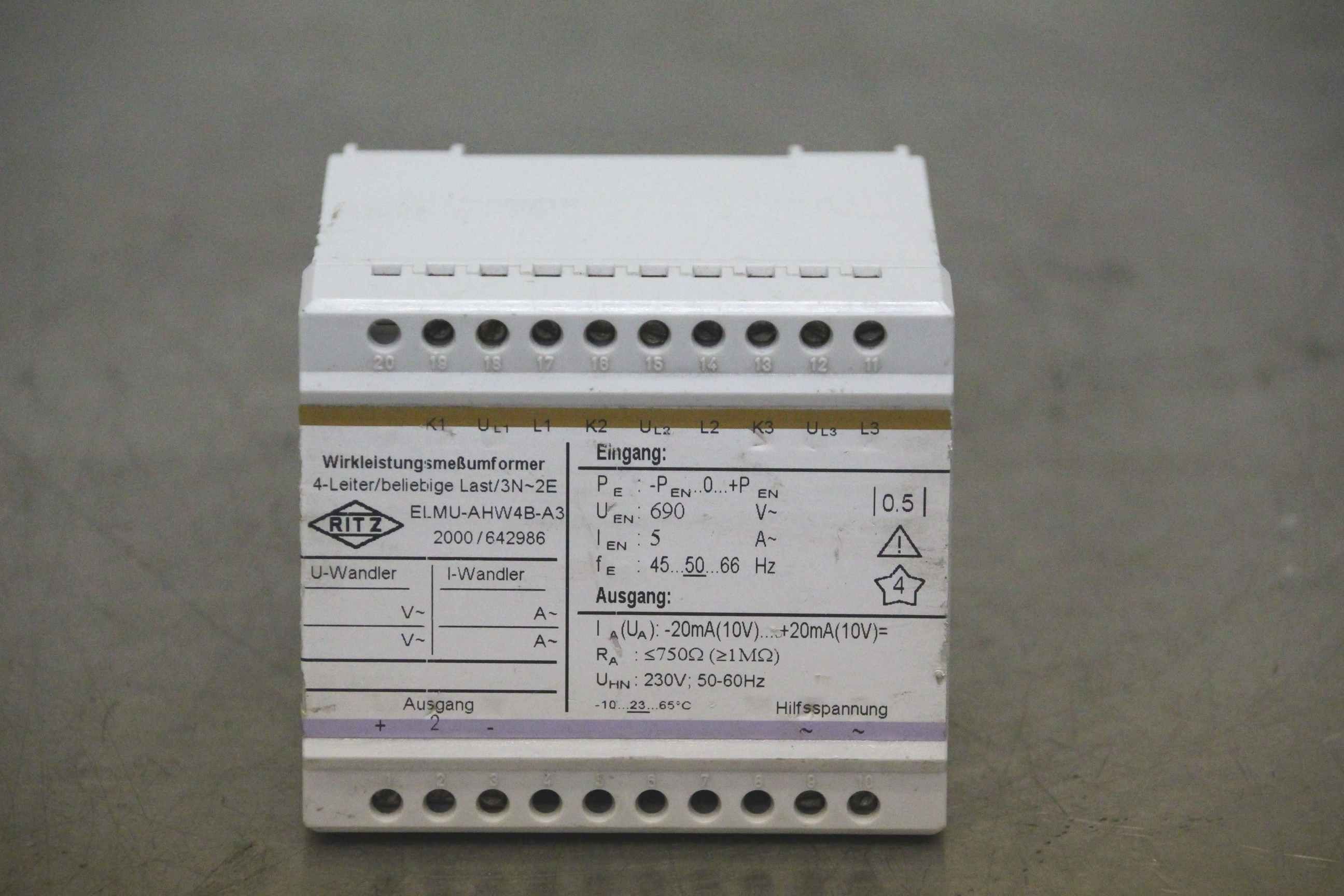 Measuring transducer, power measuring transducer, real power measuring transducer-Manufacturer: Ritz, active power transmitter-Type: ELMU-AHW4B-A3-Number: 3x devices available-Price: per piece-Dimensions: 85/95/H110 mm-Weight: 0.5 kg