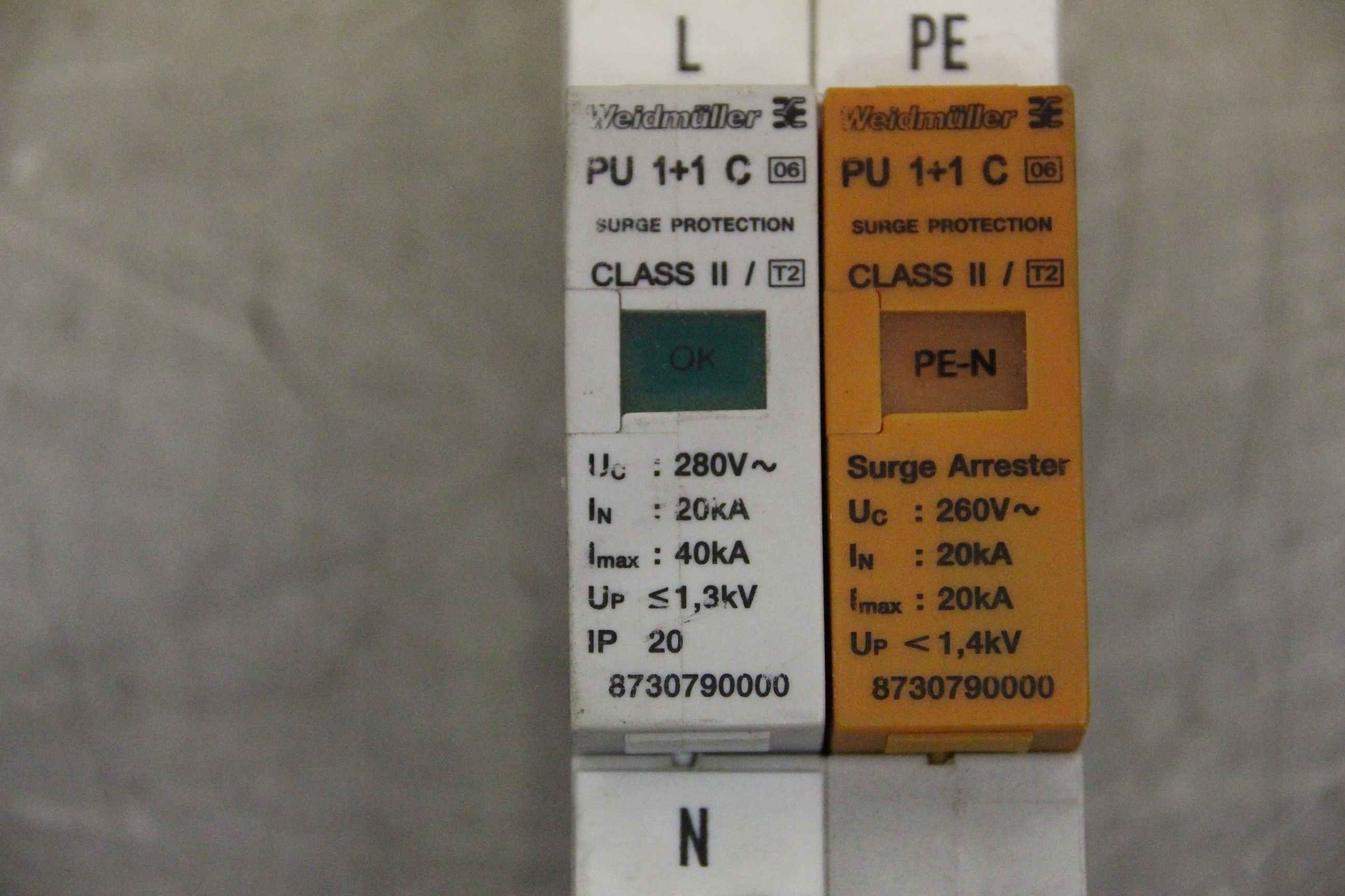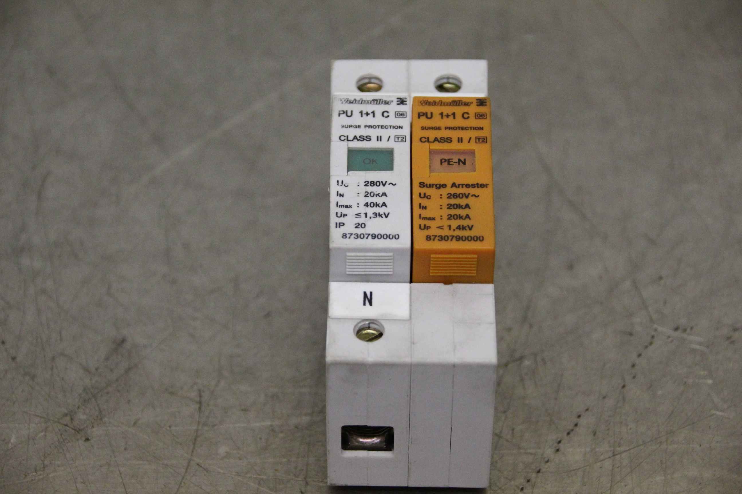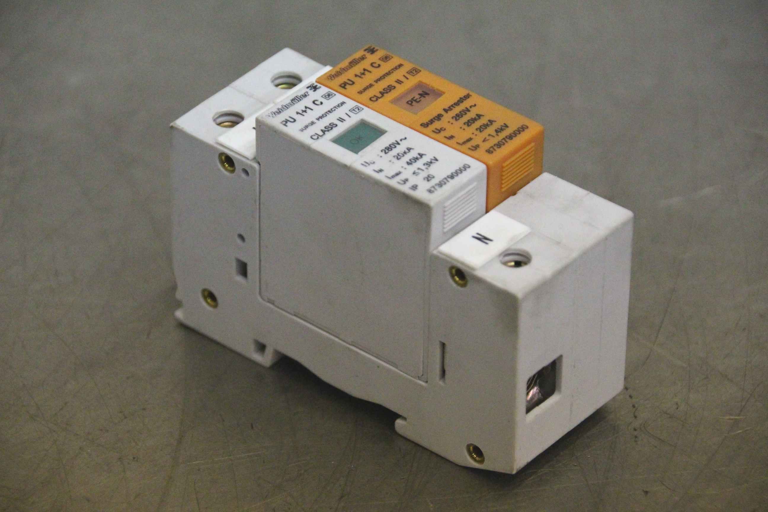 Motor contactor, auxiliary contactor, contactor, semiconductor contactor, contactor, overvoltage protection switch-Manufacturer: Weidmüller, surge protection switch-Type: PU 1+1 C Class II-Number: 6 pieces available-Price: per piece-Dimensions: 90/35/H60 mm-Weight: 0.2 kg/piece