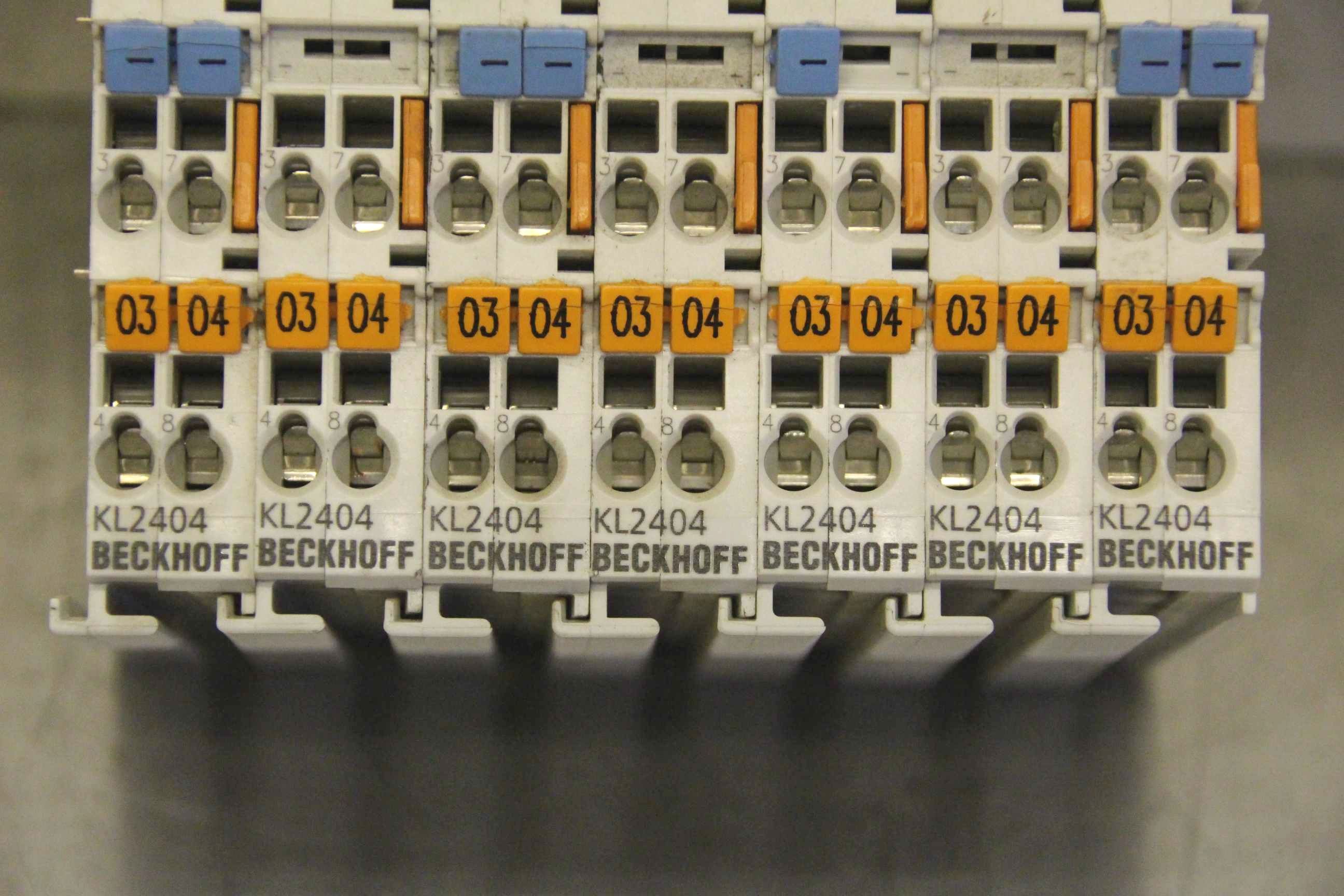 PTC thermistor relay, contactor, semiconductor contactor, contactor, relay, fiber optic converter, DIN rail power supply, rail power supply, power supply terminal, digital input terminal, digital output terminal-Manufacturer: Beckhoff, 4-channel digital output terminal-Type: EL 2404-Nominal voltage: 24 V DC-Number: 5 pieces available-Price: per piece-Dimensions: 12/68/H100 mm-Weight: 0.07 kg