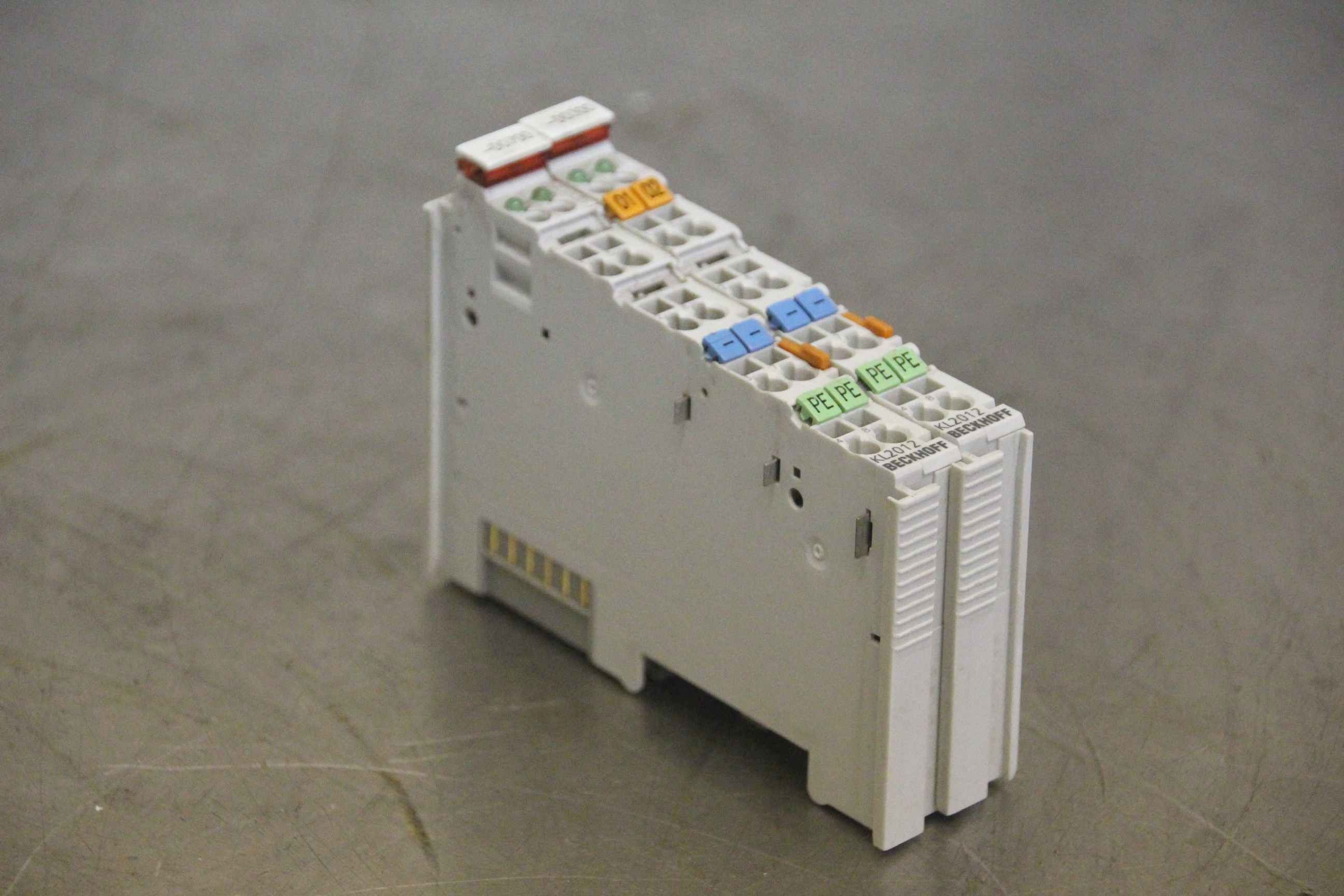 PTC thermistor relay, contactor, semiconductor contactor, contactor, relay, fiber optic converter, DIN rail power supply, rail power supply, power supply terminal, digital input terminal, digital output terminal-Manufacturer: Beckhoff, 2 pieces 2-channel digital output terminal-Type: KL 2012-Nominal voltage: 24 V DC-Price: complete-Dimensions: 12/68/H100 mm-Weight: 0.07 kg/piece
