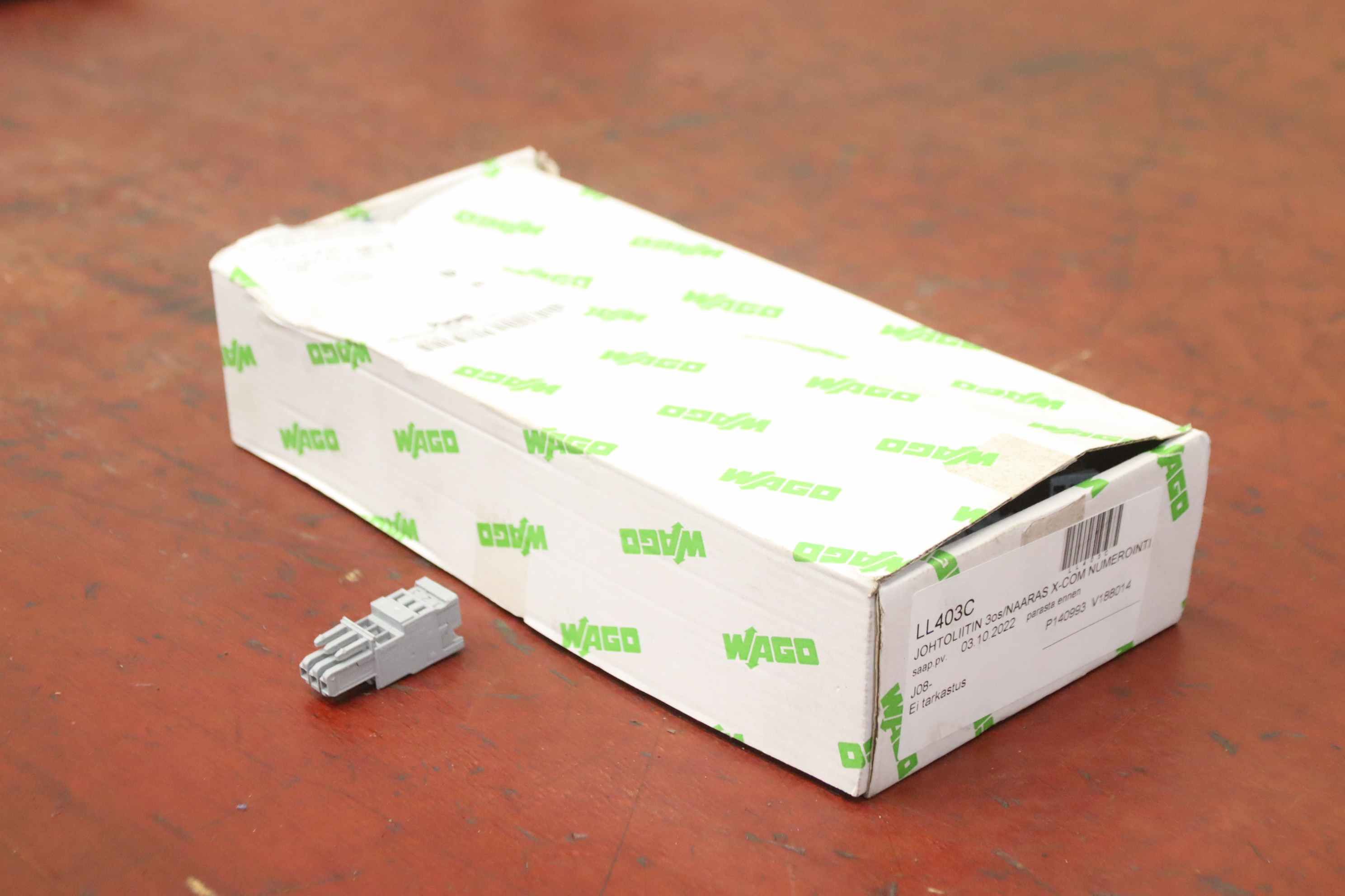 Connectors, plugs, 1-wire female connector,-Manufacturer: Wago, 1-conductor female connector Box with 60 pieces-Type: 769-103 3-pin-Price/Delivery: complete-Dimensions box: 290/130/H70 mm-Weight: 0.6 kg