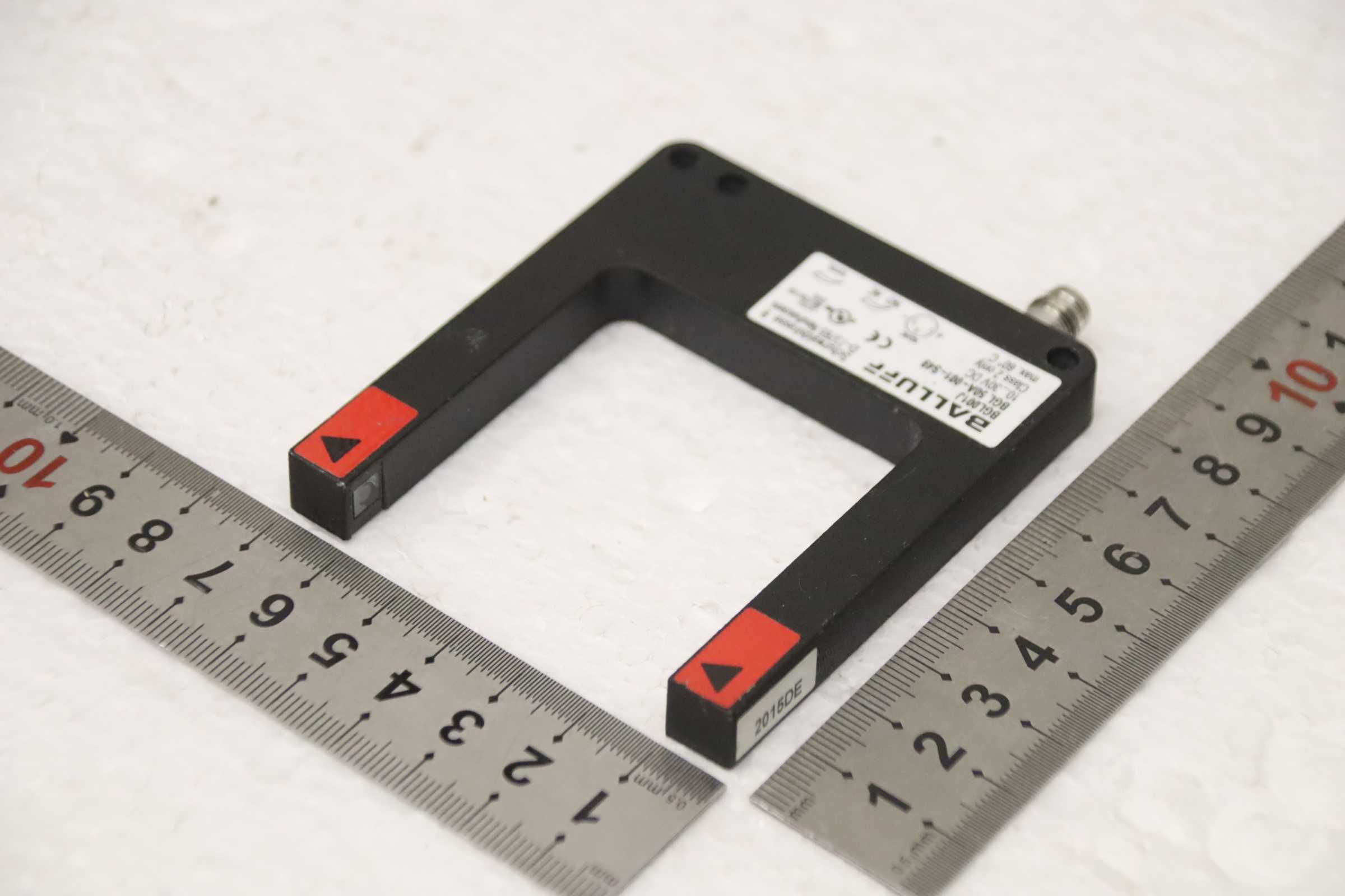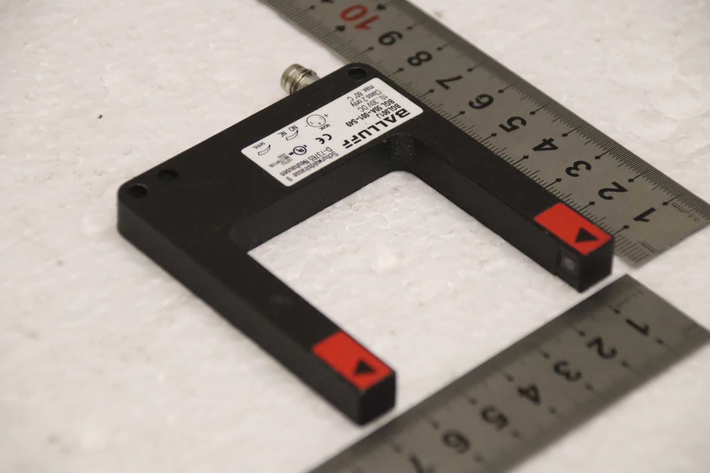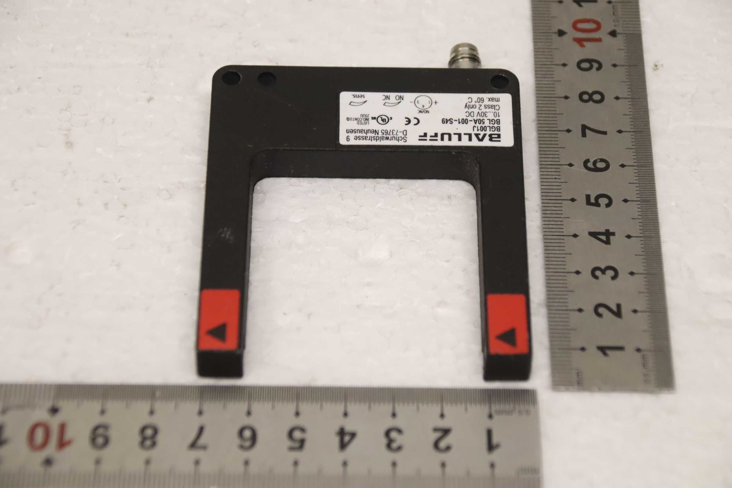 Light barrier, frame light barrier, inductive sensor, electronic sensor, proximity switch, fork light barrier -Manufacturer: Balluff, fork light barrier -Type: BGL001J BGL 50A-001-S49 -Voltage: 10...30 V DC -Number: 2 sensors available Price: per piece -Dimensions: 90/70/H10 mm -Weight: 0.1 kg/pc.