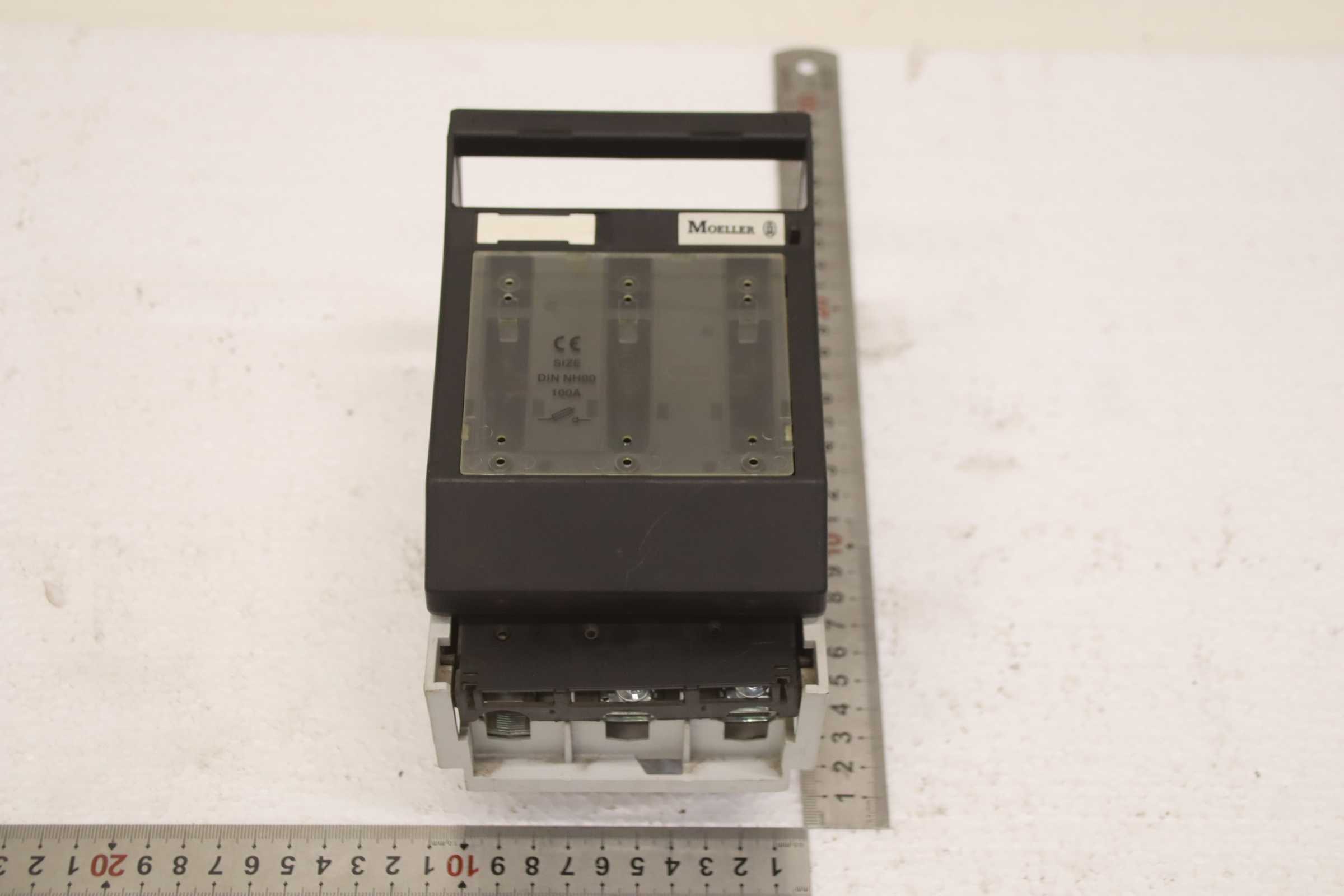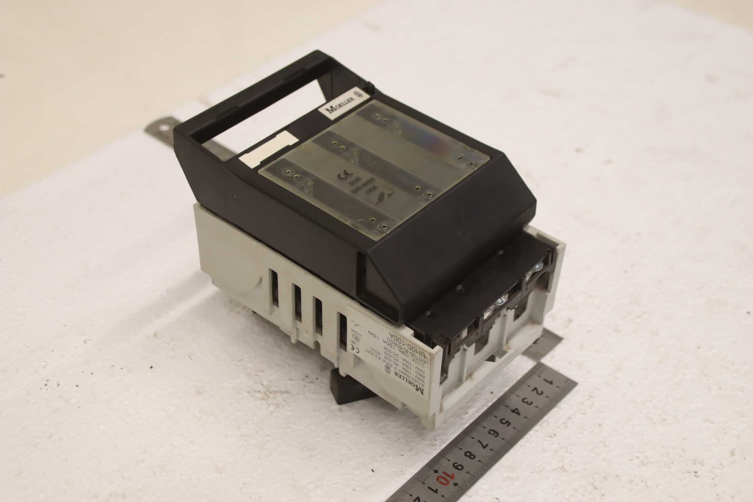 Auxiliary circuit breaker, circuit breaker, miniature circuit breaker, load break switch, load disconnector, power switch, power disconnector, auxiliary switch, main switch, disconnector, fuse-switch disconnector -Manufacturer: Moeller, NH fuse switch disconnector 100 A -Type: GSTA00-40-60AOU NH00-100A -Quantity: 1x load break switch available -Dimensions: 170/105/H130 mm -Weight: 0.9 kg