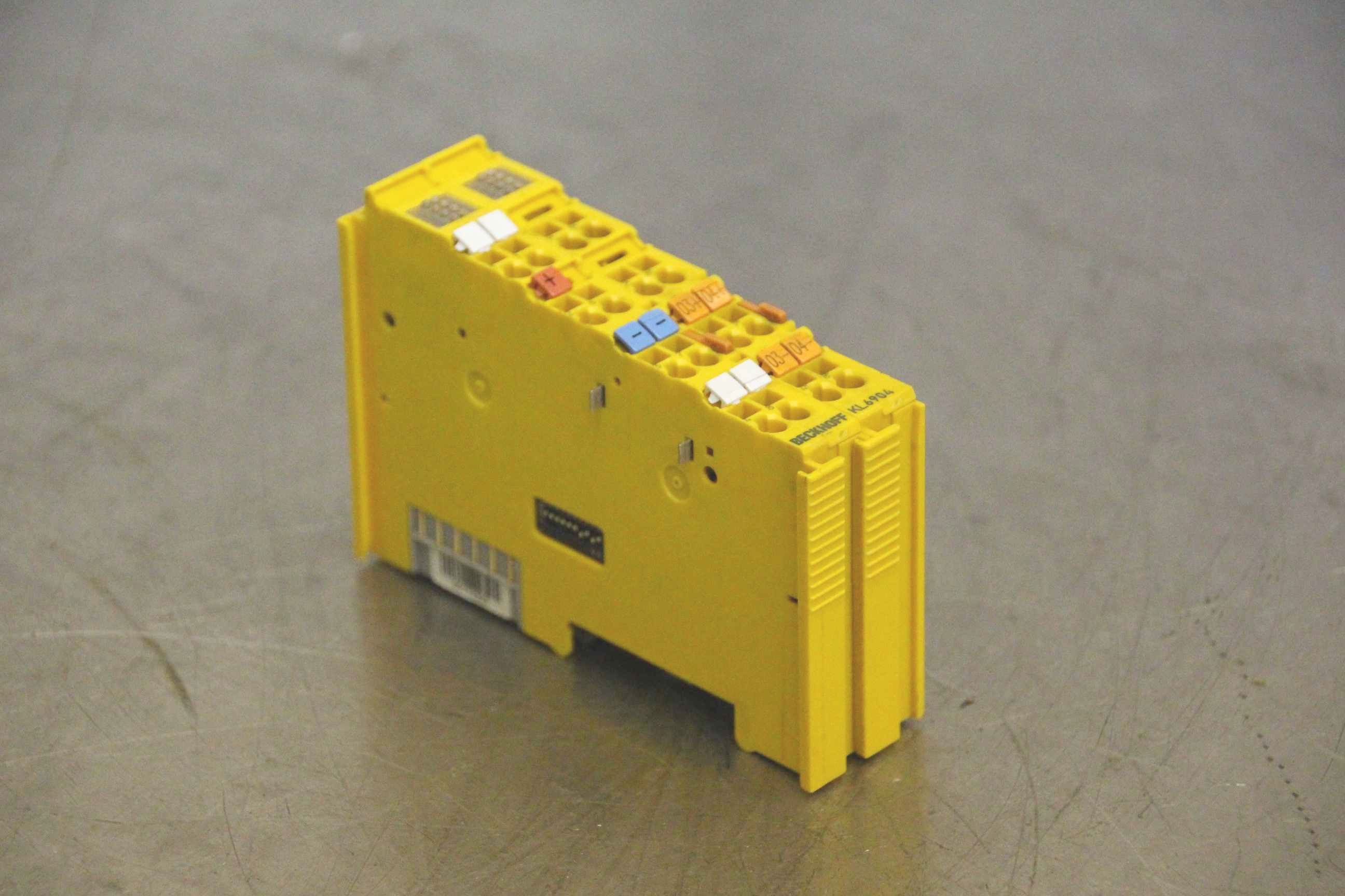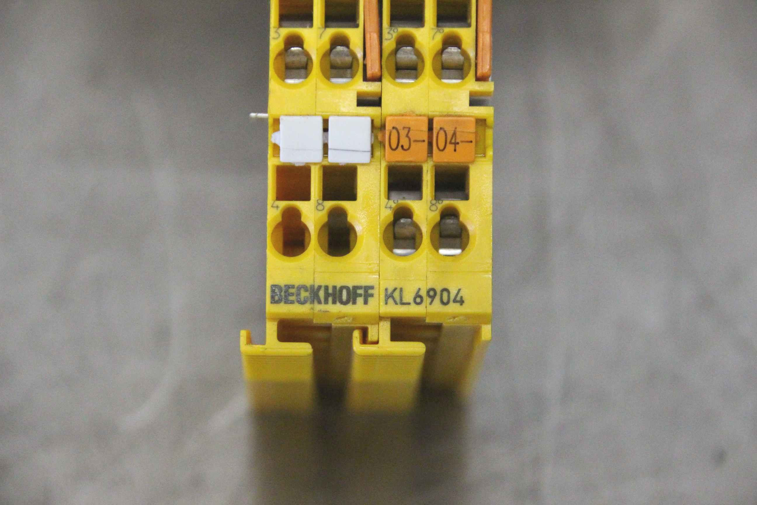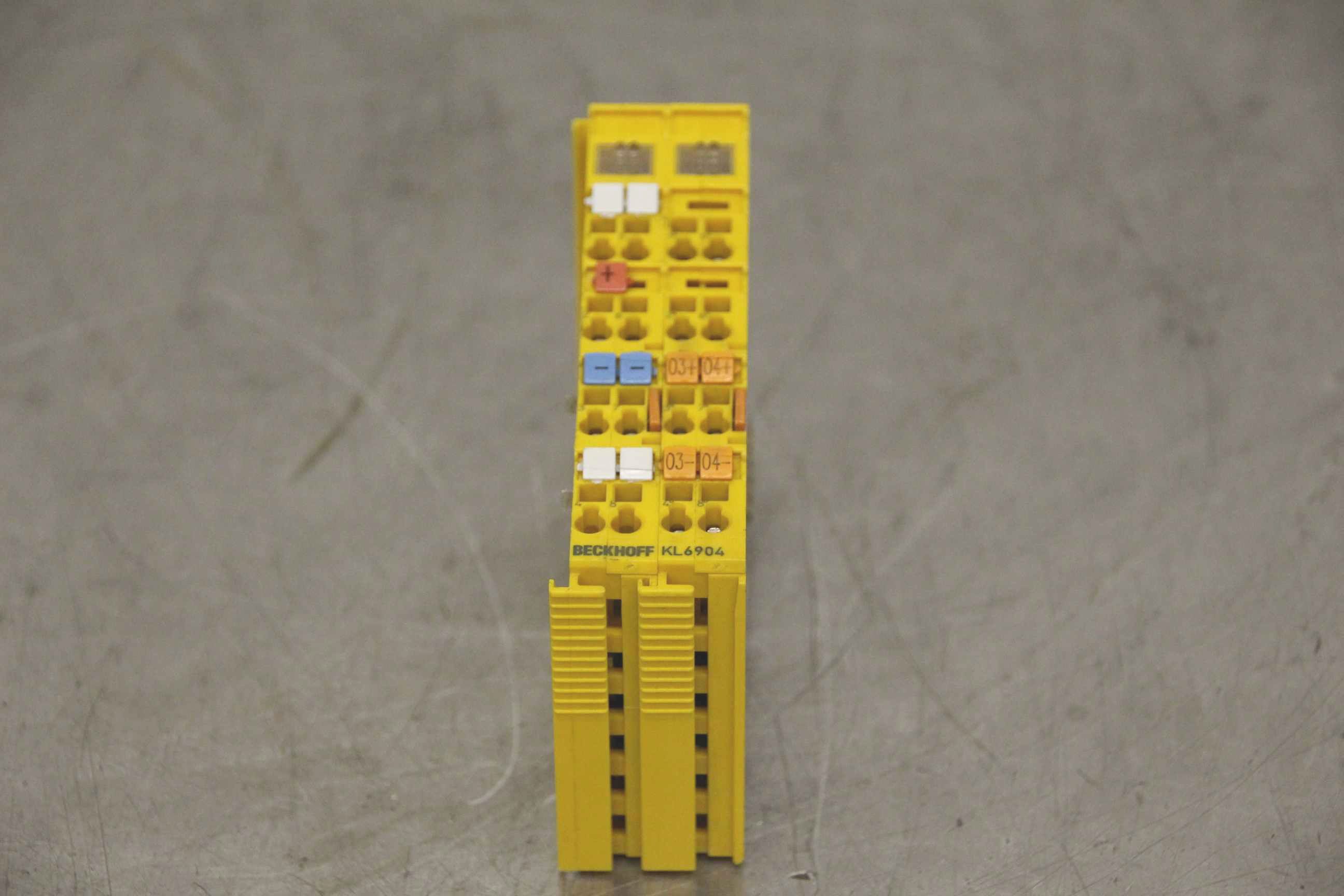 Fieldbus, Profibus, PLC control, automation technology, controllers and regulators, bus coupler, logic bus terminal -Manufacturer: Beckhoff, TwinSAFE Logic bus terminal -Type: KL 6904 -Nominal voltage: 24 V DC -Dimensions: 24/68/H100 mm -Weight: 0.2 kg