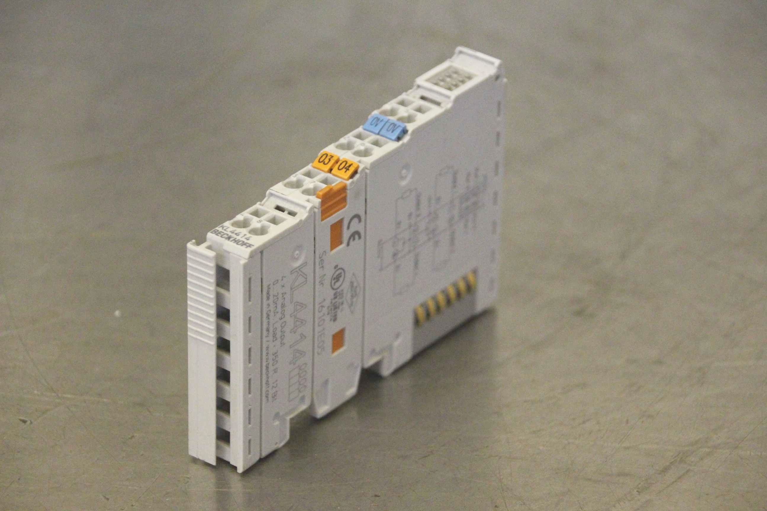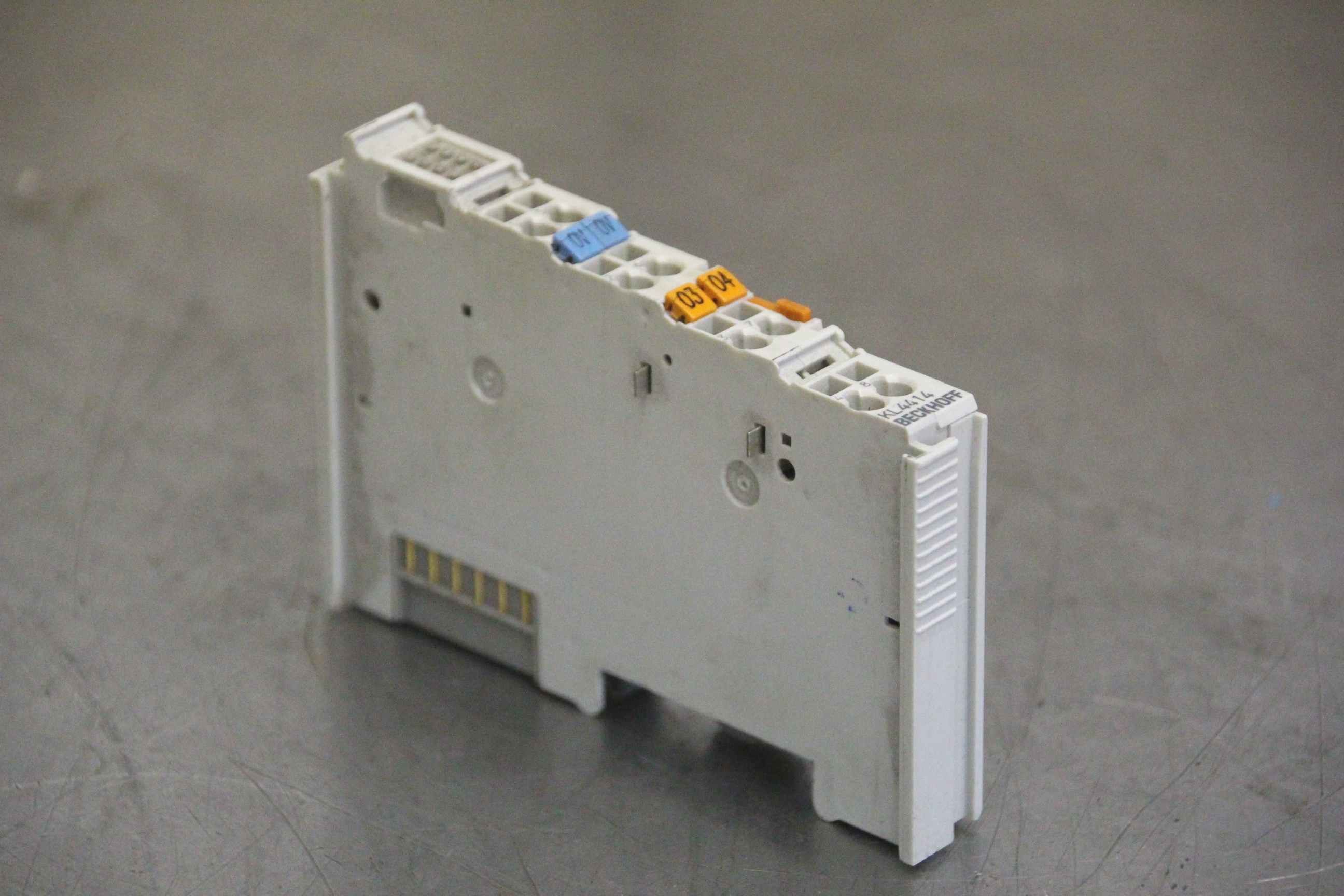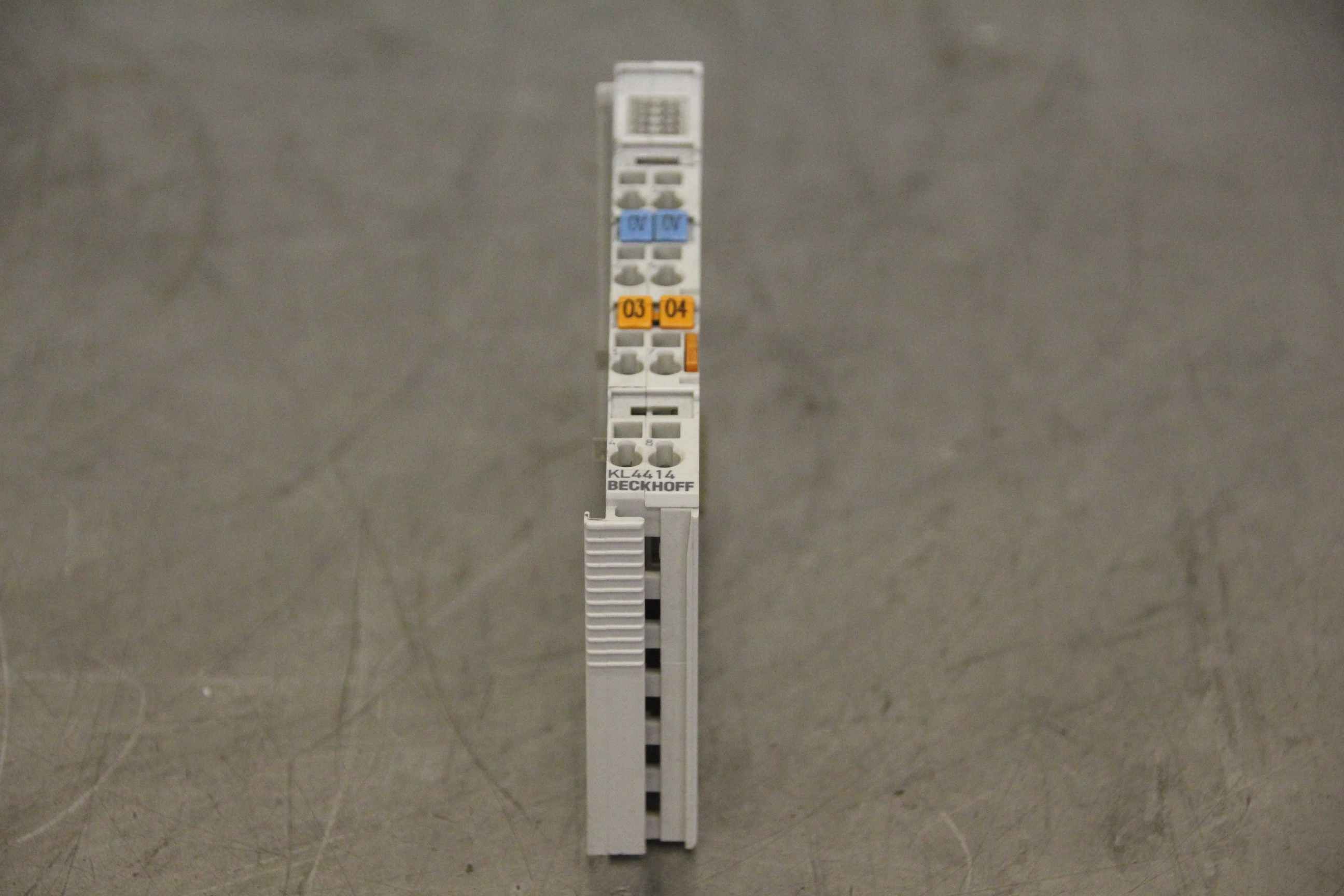 PTC thermistor relay, contactor, semiconductor contactor, contactor, relay, fiber optic converter, DIN rail power supply, rail power supply, power supply terminal, digital input terminal, digital output terminal, analog output terminal -Manufacturer: Beckhoff, 4-channel analog output terminal -Type: KL 4414 -Dimensions: 12/68/H100 mm -Number: 1 piece available -Weight: 0.075kg