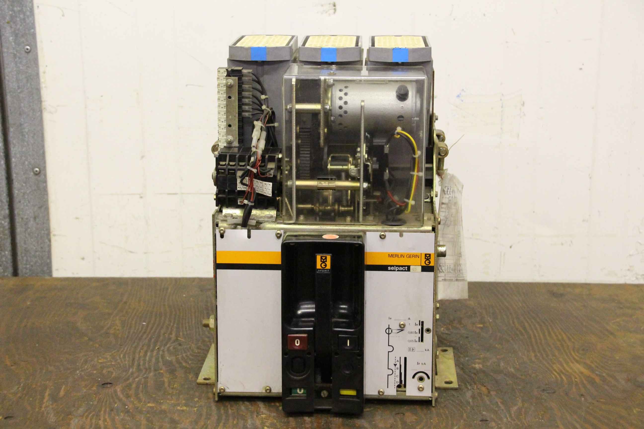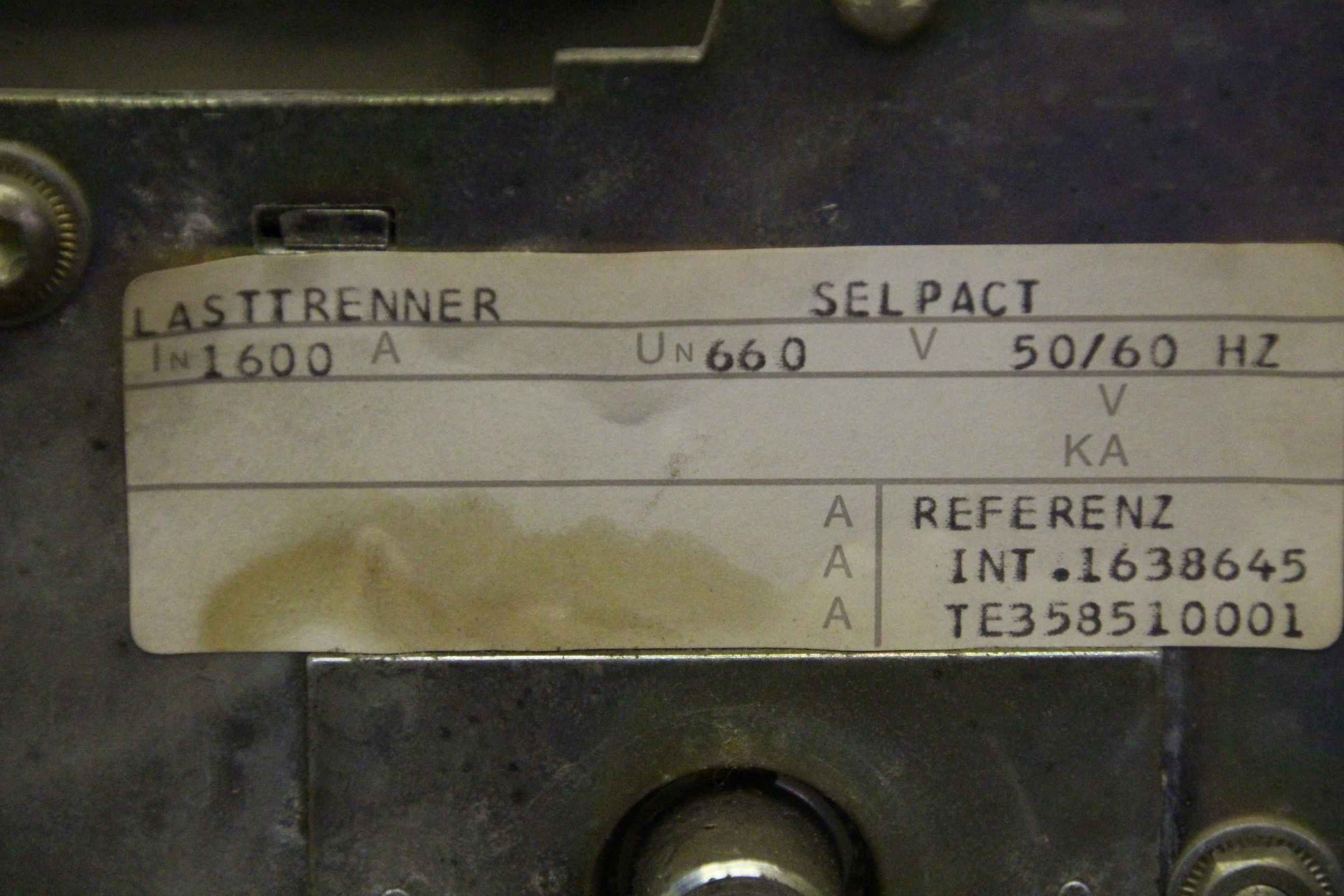 Auxiliary switch, automatic circuit breaker, fuse, line switch, line circuit breaker, switch disconnector, terminal plate, switch disconnector -Manufacturer: Merlin Gerin, switch disconnector type Selpact -Current strength: 1600 A -Voltage: 660 V/50/60 Hz -Dimensions: 395/340/H435 mm -Weight. 54 kg