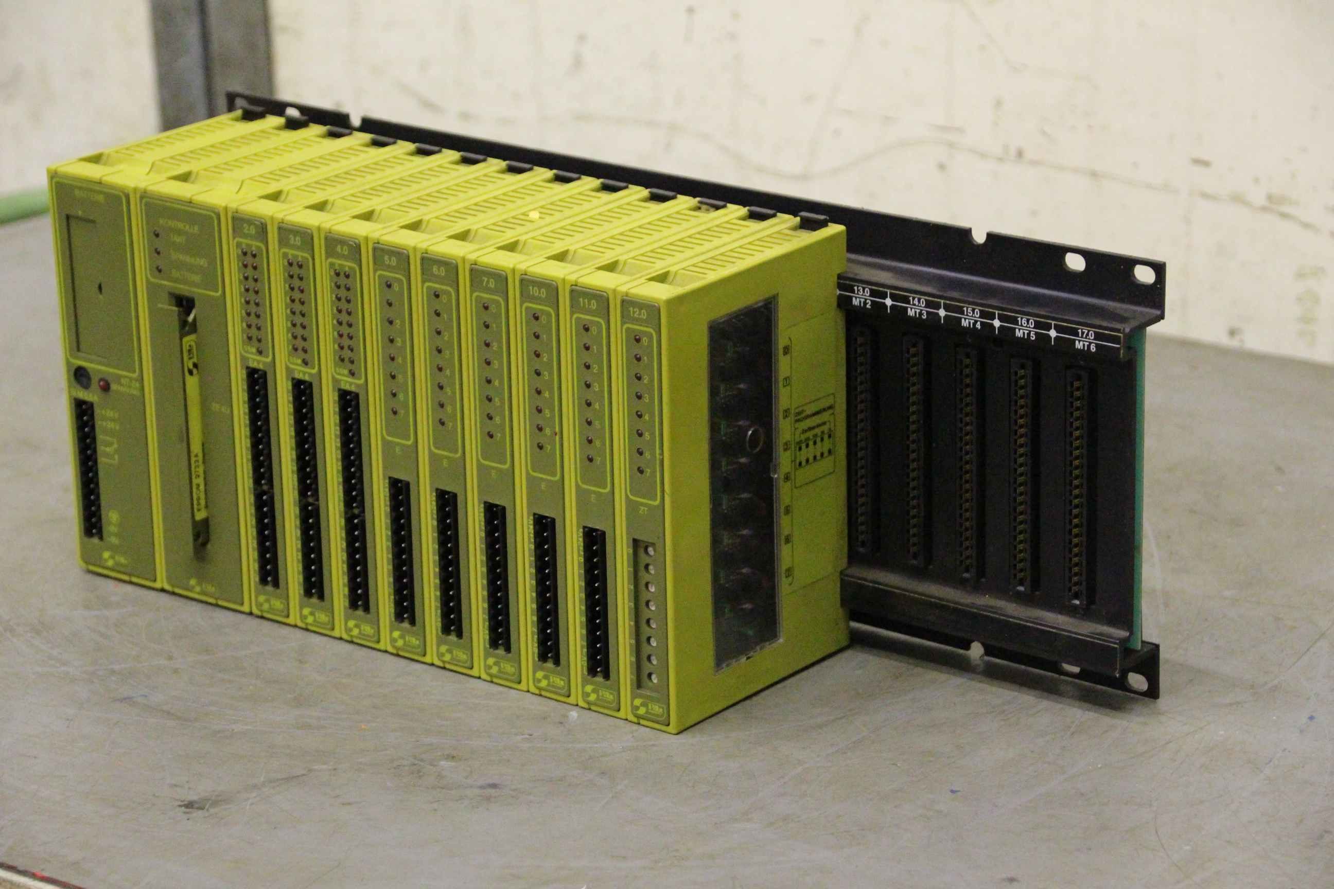 Module converter, electronic module-Number: 11 electronic modules from Pilz-Module carrier: C-P8-GA-14-Power supply: C-P8 NT-24 24 V-Price: complete-Dimensions: 480/175/H140 mm-Weight: 4.9 kg
