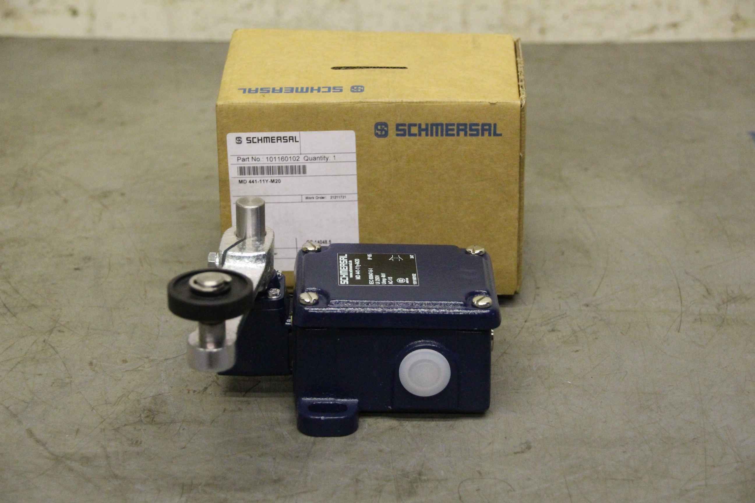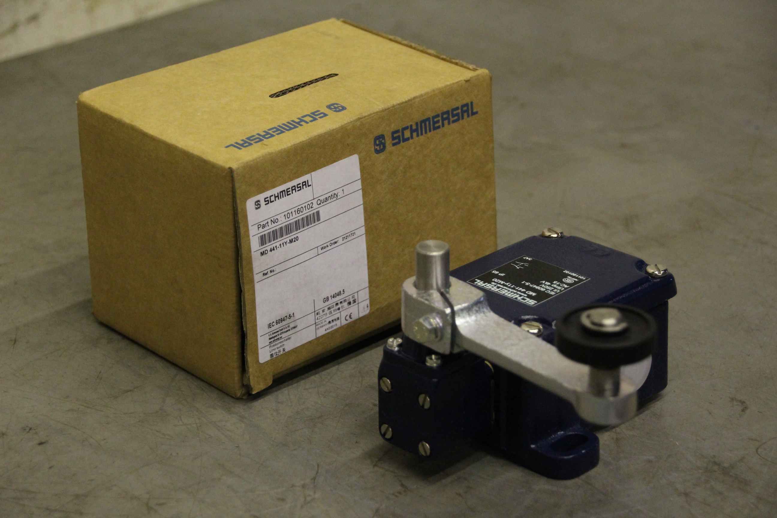 Limit switch, button, safety switch, position switch, safety switch, safety limit switch -Manufacturer: Schmersal, position switch unused OVP -Type: MD 441-11y-M20 -Number: 1x switch available -Price: per piece -Carton dimensions: 160/105/H115 mm -Weight: 1.8 kg/piece