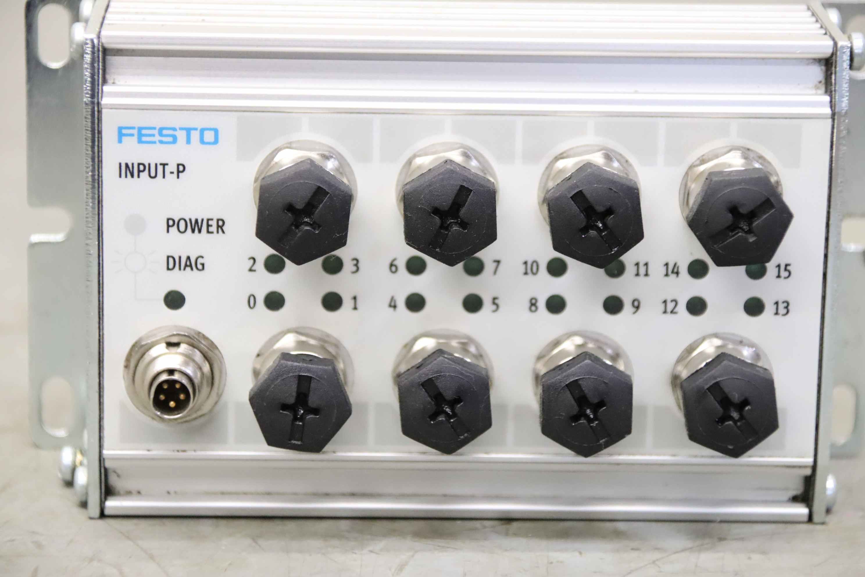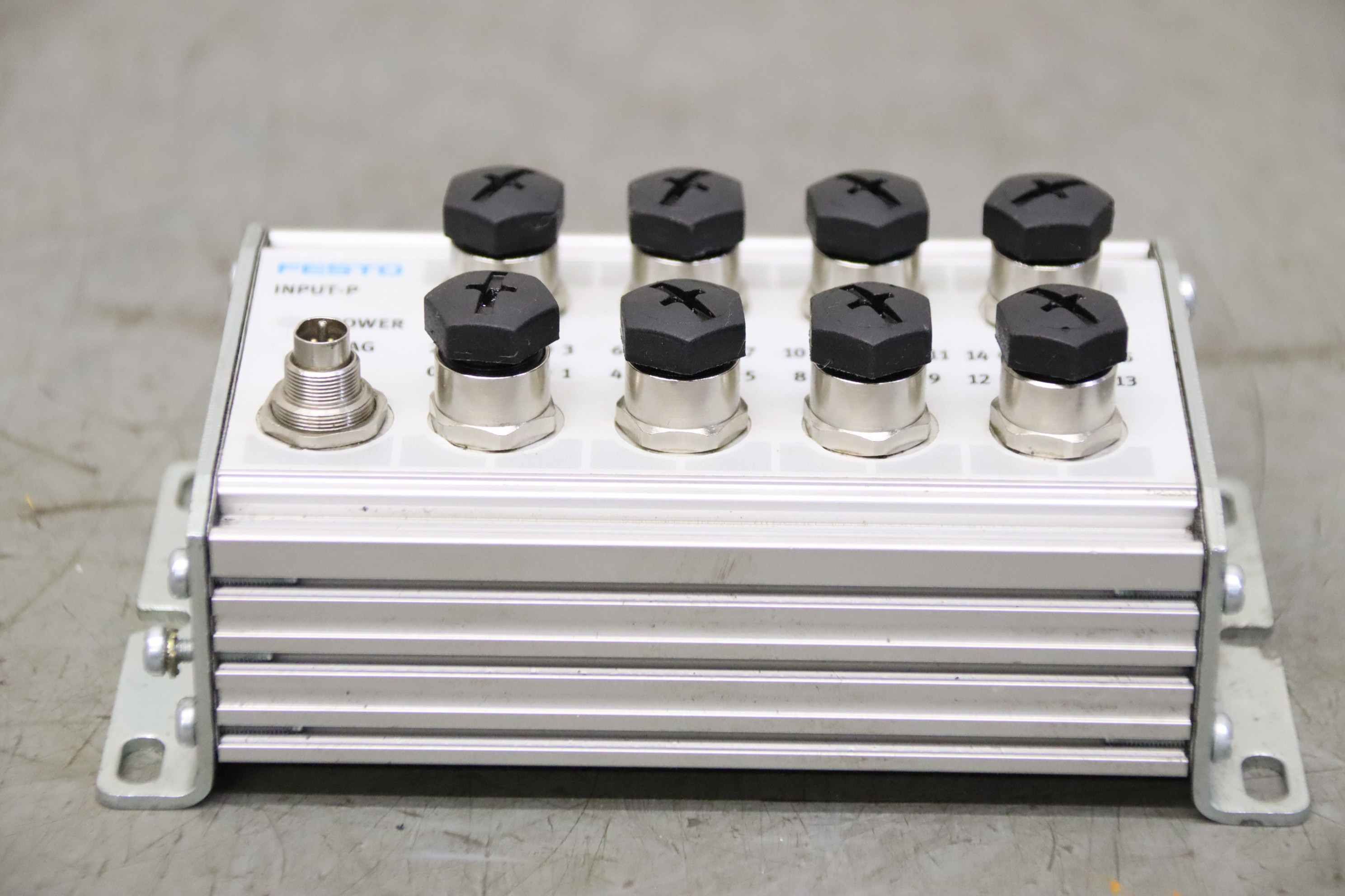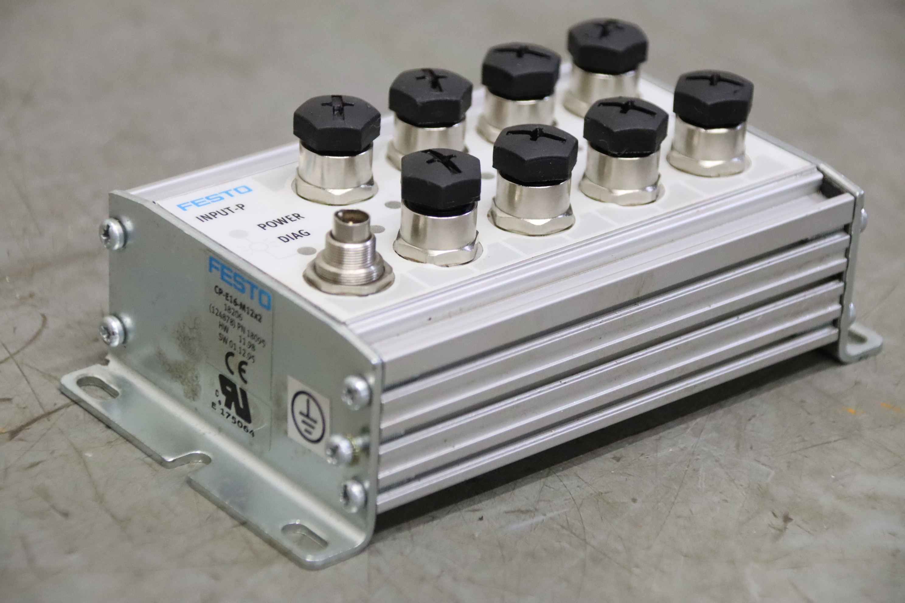 Profibus single module, Profibus single module for PLC control, fieldbus, PROFIBUS, input module-Manufacturer: Festo, input module-Type: CP-E16-M12X2-Item no.: 18206-Quantity: 1x modules available-Dimension: 145/80/H55 mm-Weight: 0.5 kg