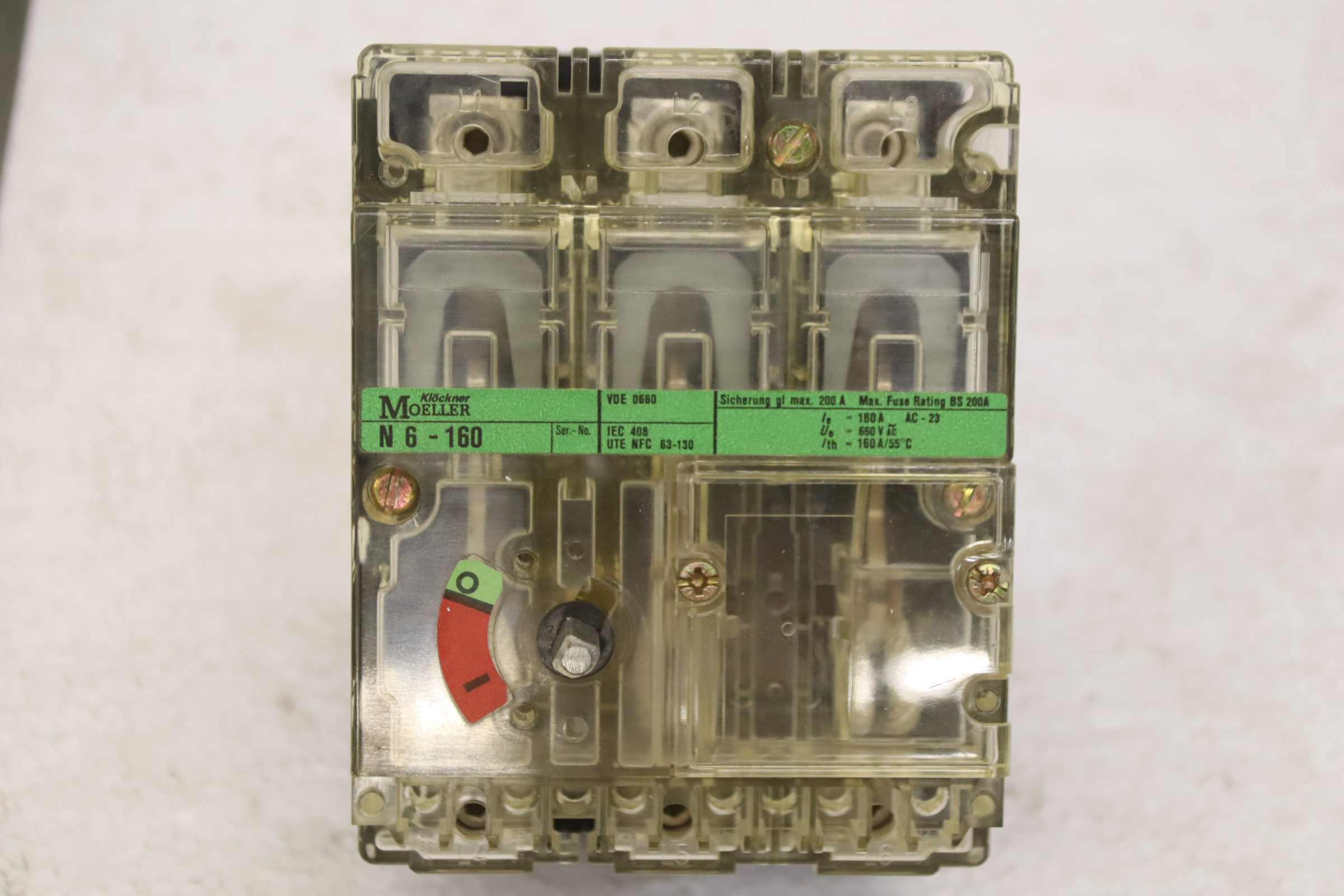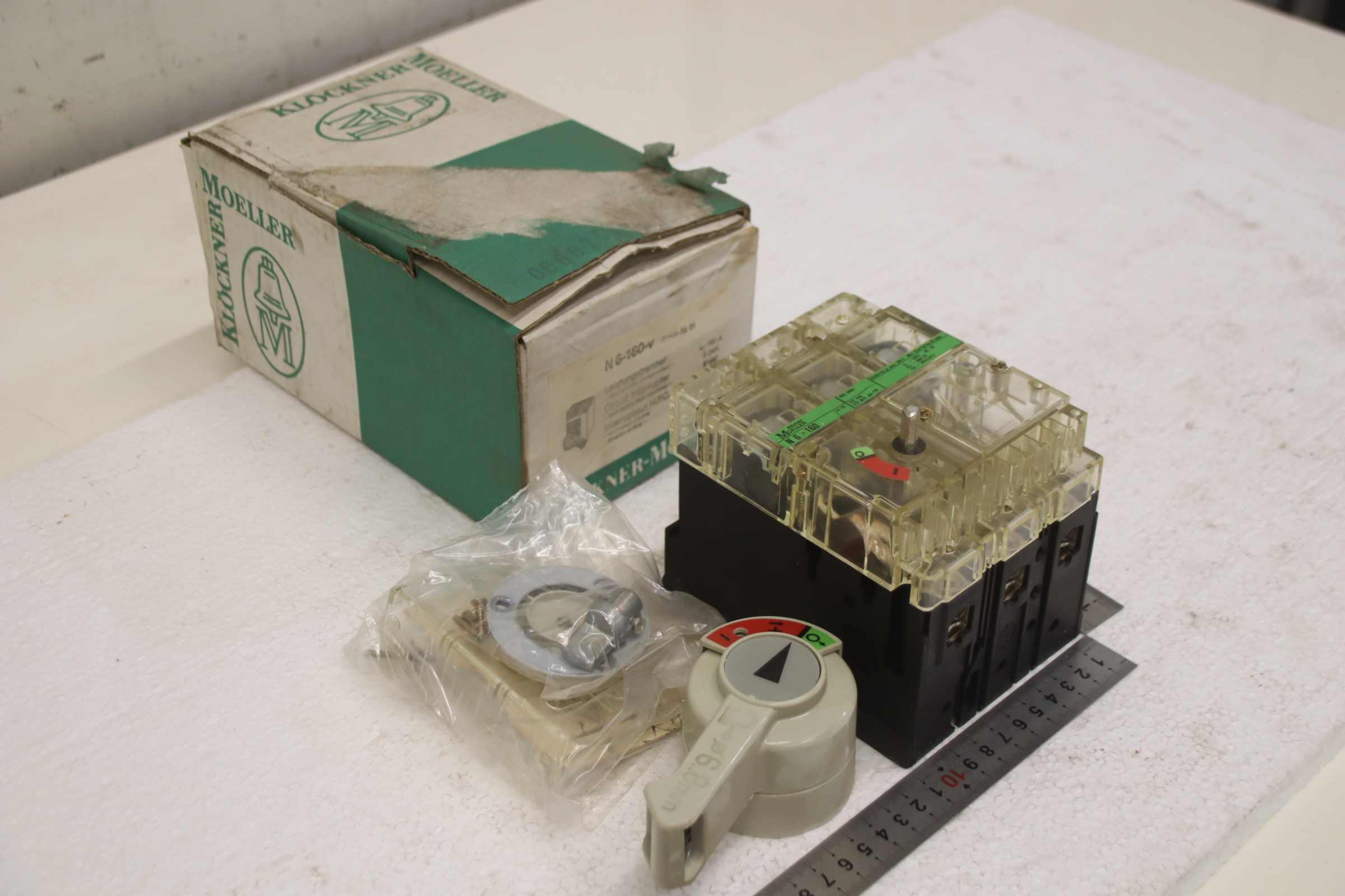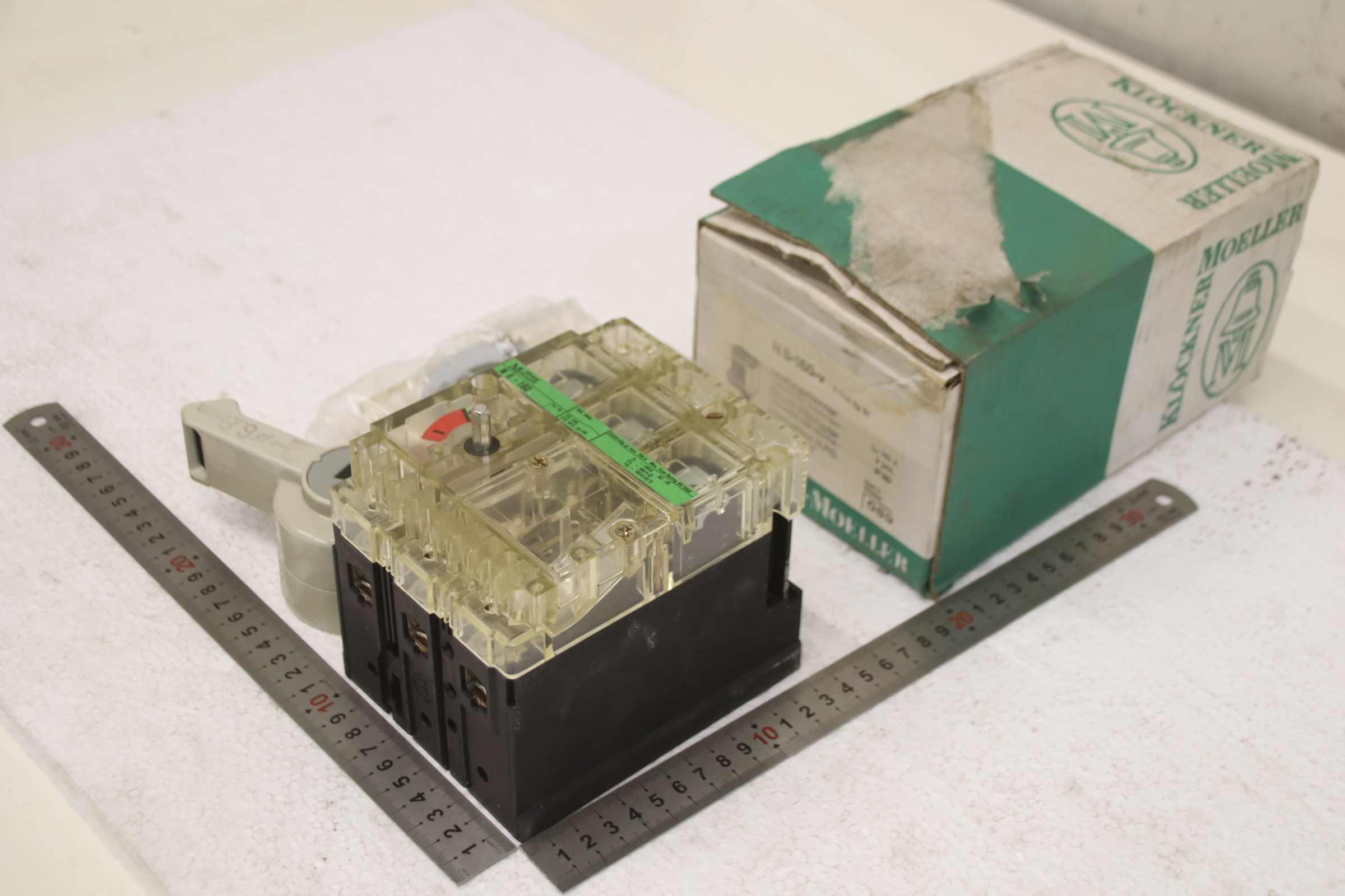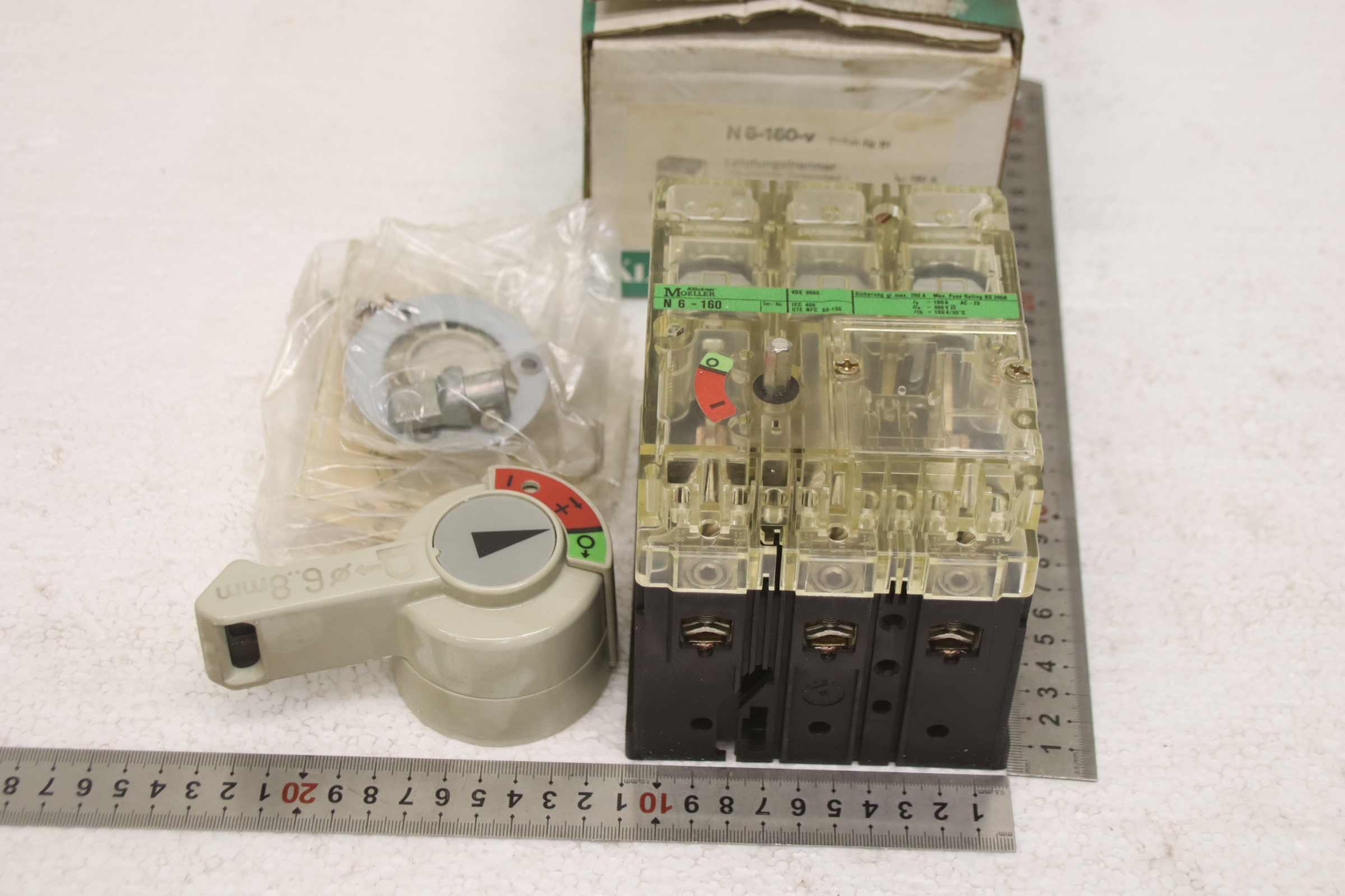 Auxiliary circuit breaker, circuit breaker, miniature circuit breaker, load break switch, load disconnector, power switch, power disconnector, auxiliary switch, main switch, disconnector -Manufacturer: Klöckner Moeller, fuse-switch disconnector, 160 A, unused, original packaging -Type: N6-160-V -Quantity: 1x load break switch available -Carton dimensions: 225/140/H115 mm -Weight: 1.6 kg