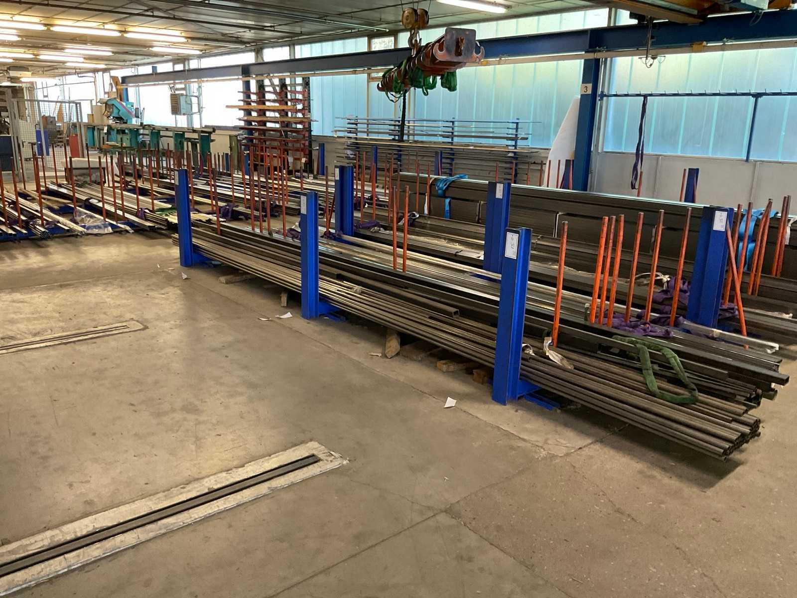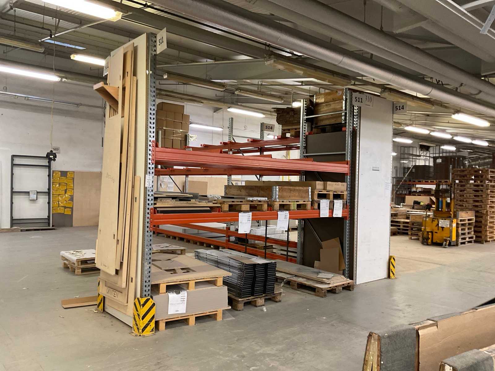 Cantilever rack consisting of: 3 uprights, stand height approx. 3000mm, arm length approx. 1200mm, 3 levels, with content Auction-ID: A7-45254-478