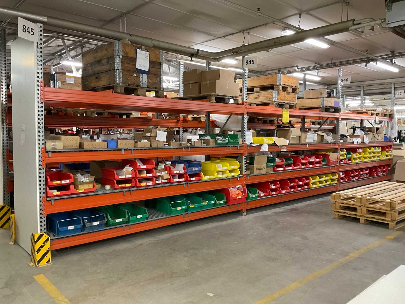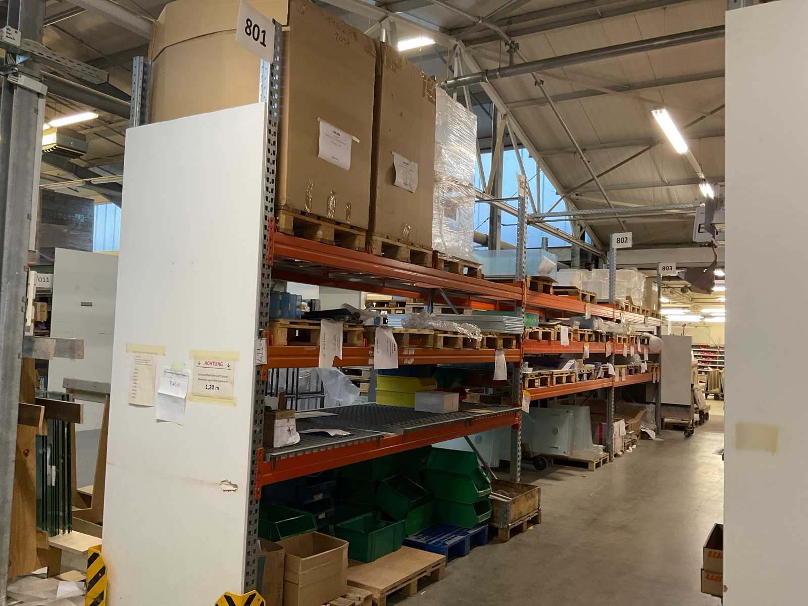Heavy-duty shelving consisting of: 5 uprights approx. 1140x2900mm, 18 trusses approx. 4000mm, incl. pallet holders, with contents Auction-ID: A7-45254-427