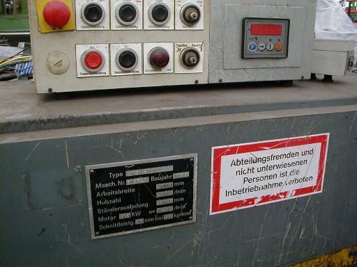 CNC - otomatik bükme açısı izleme özelliğine sahip kontrollü elektrohidrolik hassas uzun bükme makinesi (döner bükme makinesi) Grafikli 15" dokunmatik ekran – bir veya iki kişilik çalışma için seçici anahtar, maksimum bükme uzunluğu 6.050 mm, projeksiyon 1.250 mm, maksimum sac kalınlığı ST42 – 3 mm, maksimum eğilme açısı 135 - 200 mm'ye kadar üst yanak açılma alanı, katlanabilir durdurma parmaklı arka gösterge – durdurma aralığı 12 ila 1.200 mm – 40'a kadar eğim – 500 mm/sn'ye kadar ayarlanabilir hareket hızı, çalışma yüksekliği yaklaşık 830 mm, tahrik gücü 7,5 kW, boyutlar yaklaşık 6,4 x 1,8 m x 1,5 m, Ağırlık yaklaşık 8.500 kg