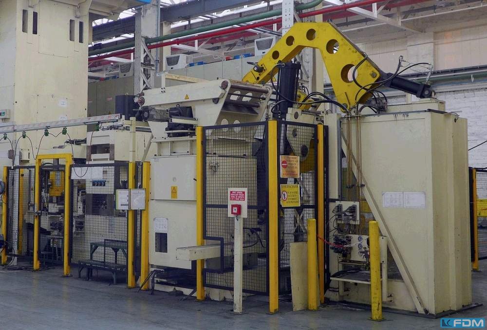 sheet width:2000 mmplate thickness:1.8 mmControls:SIEMENS S7 PRESS DESIGN:. - frame design : H-frame :. - openings in uprights : yes :. - opening in table : yes :. - moving bolster : yes :. PRESS TABLE:. - clamping surface (left-right):2800 mm - clamping surface (front-back):2800 mm - height above floor level:375 mmRAM:. - ram force:800 to - clamping surface (left-right):2800 mm - clamping surface (front-back):2800 mm - stroke:350 mm - number of strokes max:55 /minRAM (MECHAN. PRESS):. - ram adjustment:350 mmTOOL ASSEMBLY DIMENSIONS:. - shut height (stroke down, adjustment up):1100 mm - distance between columns (H-frame):3100 mm - Free passage between side columns (width):2560 mm - Free passage between side columns (height):1500 mmDECOILER:. - design : single coil :. - sheet width max:2000 mm - sheet width (min):400 mm - max. weight of coil:30 to - max. di ...