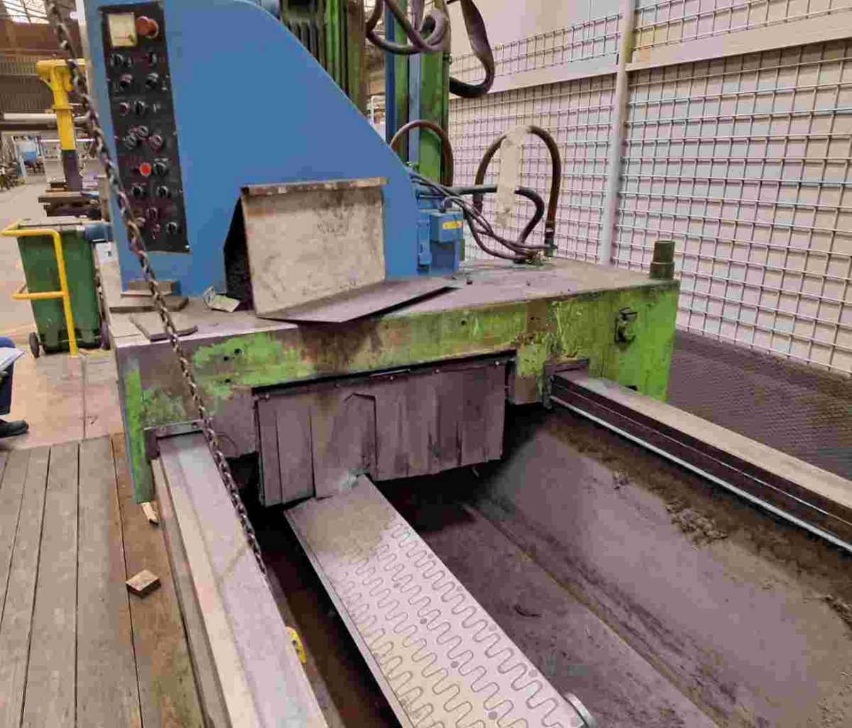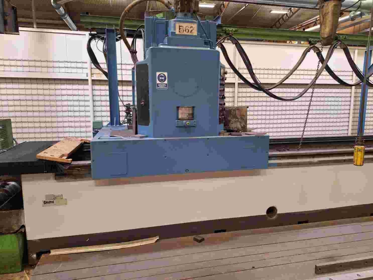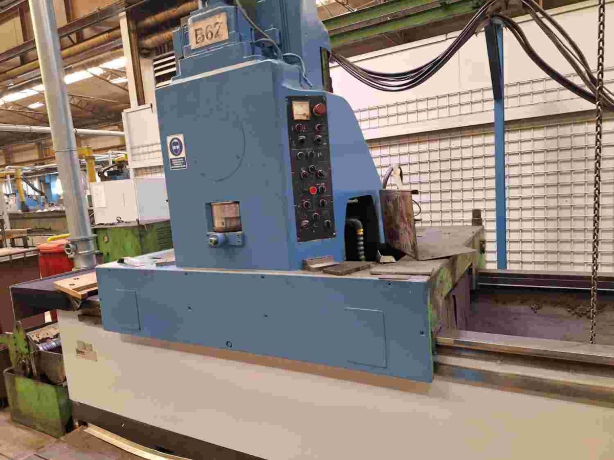 grinding length: 6000 mmgrinding width: 500 mmworkpiece height: 250 mmspeed of grinding head: 0,02 - 30 m/mintable width: 700 mmsegment head diameter: 630 mmgrinding motor: 110 kWgrinding wheel speeds: 1500 U/minmagnetic clamping plate: 6200 x 200 mmtotal power requirement: - kWweight of the machine ca.: - tdimensions of the machine ca.: - mPrecision vertical surface grinding machineequipped with :- segment grinding head- magnetic table 6200 x 200mm - inclinable- Traction drive grinding head by direct current via toothed rack- Coolant tankThe data for this ad was created with ModulMWS - the software solution of LogoTech oHG.