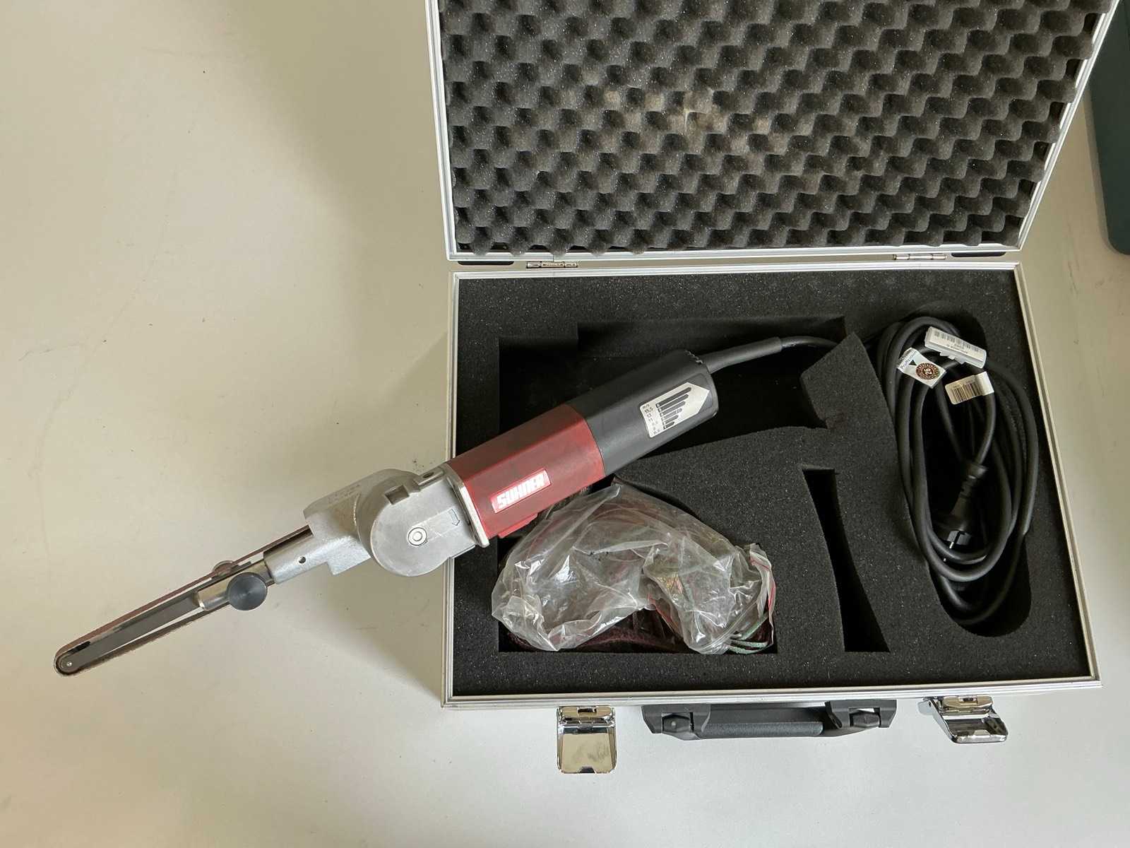 sanding belt length:max. 470 mmworkpiece dia.:600 mmtable - swivable:0 - 6 Gradtaper:Reitstock Morse 2 turning speed range::1260 - 3100 U/mintable movement:längs 470 mmtool taper:schwenkbar 0-6 °, 90° dre total power requirement:0,4 kWweight of the machine ca.:950 kgdimensions of the machine ca.:1100 x 1100 x 1500 mmDocuments:vorhanden