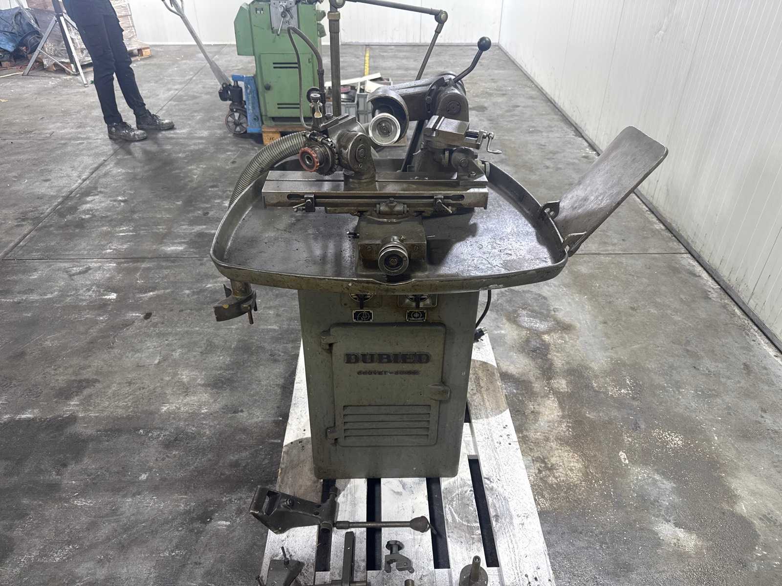 Universal grinding machine from Denius, manufactured in 's-Hertogenbosch (NL). Robust machine for the precise sharpening of various cutting tools: milling cutters, drills, reamers, turning tools, etc. Model on a heavy cast iron frame, equipped with a powerful motor and a table adjustable in several axes. Features: Brand: Denius Type: Universal Tool Sharpener Origin: Netherlands Power supply: Three phase (400 V) Cross table with micrometer adjustments Swivel tool holder Upper motor driving the grinding wheel Stable cast iron frame, ideal for precision work Estimated weight: approx. 250–350 kg Auction-ID: A3-43497-33357