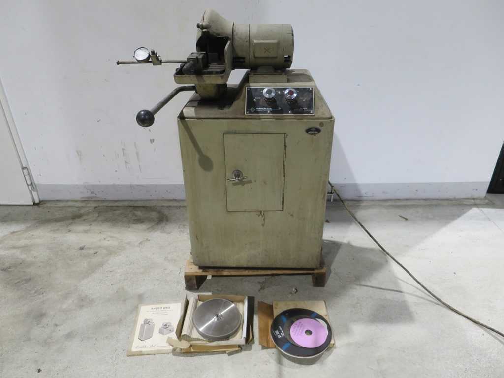 Power cutter>br>grinding wheel 250mm>br>speed 2880rpm>br>motor 1.1KW>br>with various grinding wheels>br>with vice>br>and dial gauge stop>br>coolant system>br>connection voltage 380Volt>br>see pictures >br>condition: untested (6) Auction-ID: A7-44817-199