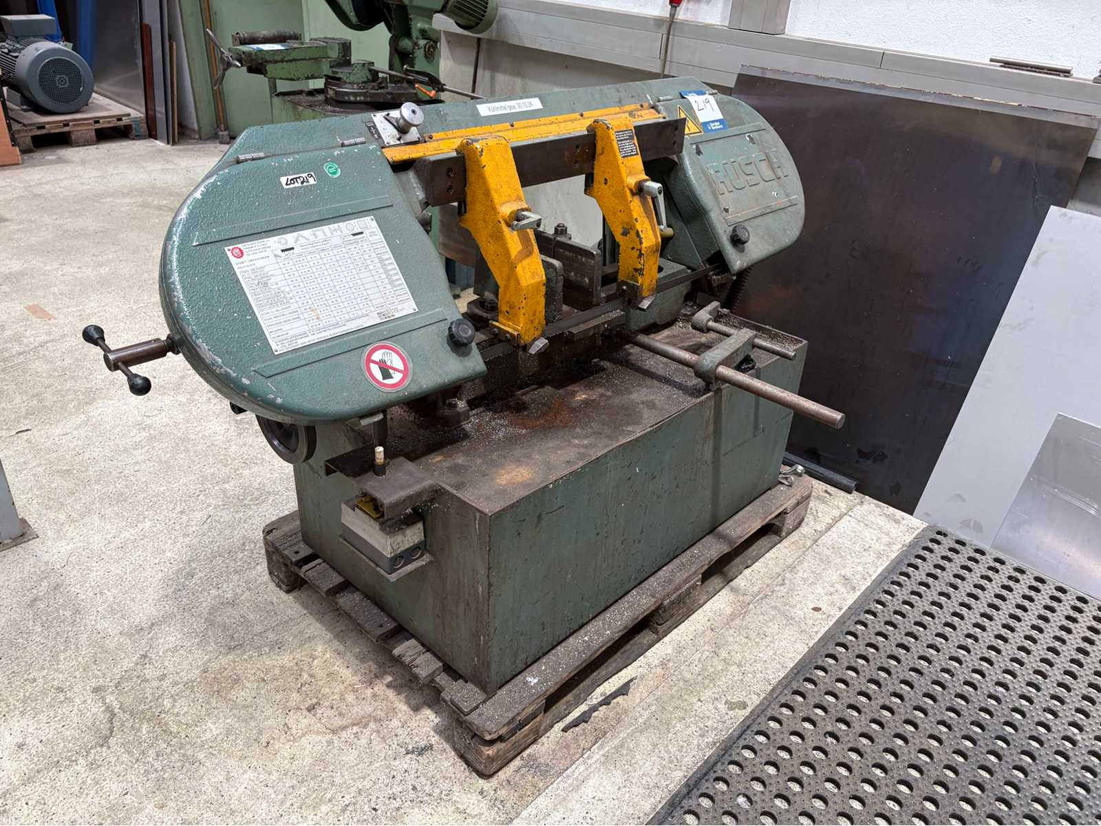 cutting diameter: 450 mmband length: 740 mmstroke: . mmtotal power requirement: . kWweight of the machine ca.: . tdimensions of the machine ca.: . mwith contents see photosThe tech. Data are manufacturer or operator information and therefore non-binding. We reserve the right to prior sale, Our terms and conditions of sale apply exclusively.About us Morethan 400 of our own machines in stock Over 15,000 m² of storage space, 70 t crane capacity More than 10,000 items and accessories for your workshop If you are interested in selling machines, production lines, or your business, please contact us. You can find further offers on our website. Tours are possible by appointment. We look forward to your visit.Your Markus Hirsch TeamThe data for this ad was created with ModulMWS - the software solution of LogoTech oHG.