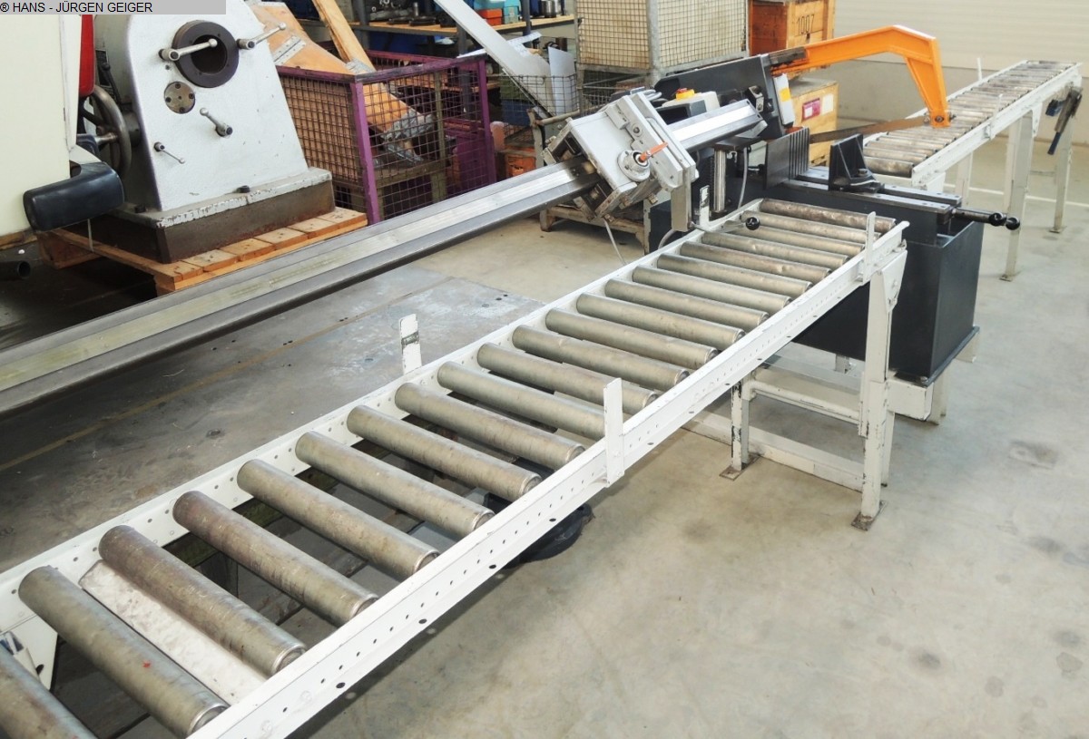 saw blade diameter: 450 mmcutting diameter: 150 mmcapacity 90 degrees: flat: 330 x 40 mmcapacity 45 degrees: round: 140 mmcapacity 45 degrees: flat: 250 x 40 mmcutting speed: 10 - 70 m/minsaw head feed: 0 - 1000 mm/minsawing motor: 1,7 / 2,6 kWweight of the machine ca.: 1,1 tAccessories: used sawblade 450 mmø, material feeder M 45 NC für autom. run, ingoing roller track 7000 mm, outgoing roller track 4000 mmThe data for this ad was created with ModulMWS - the software solution of LogoTech oHG.