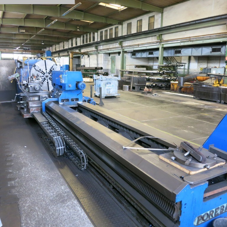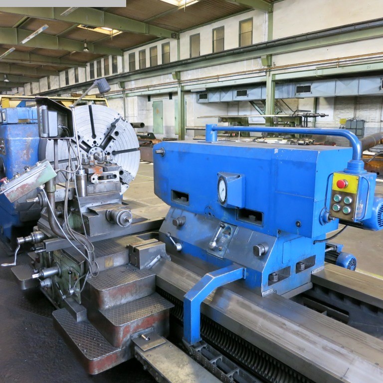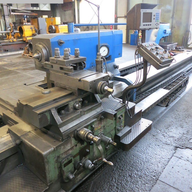turning diameter over bed: 1250 mmturning diameter over slide rest: 940 mmturning length: 6000 mmcentre distance: 6200 mmspindle speed:: 1.6-315 U/mintailstock quill diameter: 200 mmworkpiece weight: 30 tworkpiece weight max.: 40 tsteady: 3 digital readout: total power requirement: kWweight of the machine ca.: 25 tdimensions of the machine ca.: 11x2,4x1,9 mdrive motor: 75 kWThe tech. Data are manufacturer or operator information and therefore non-binding. We reserve the right to prior sale, Our terms and conditions of sale apply exclusively.About us Morethan 400 of our own machines in stock Over 15,000 m² of storage space, 70 t crane capacity More than 10,000 items and accessories for your workshop If you are interested in selling machines, production lines, or your business, please contact us. You can find further offers on our website. Tours are possible by appointment. We look forw ...
