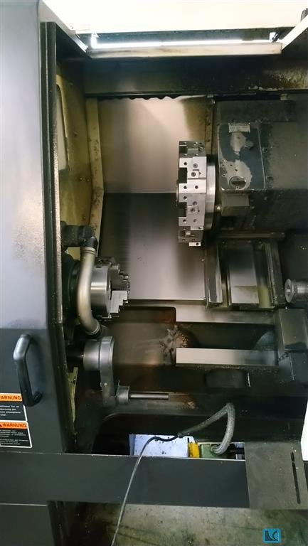 turning diameter:300 mmswing diameter:350 mmturning height:275 mmx-axis:925 mmz-axis:250 mmclamping chuck diameter:200 mmFeed speed:30 m/min.total power requirement:45 kWweight of the machine ca.:7 tMachine was used just from time to time in the last years - very good condition!with CNC SIEMENS 840 D12-station turret head with driven toolingsworkpiece in and out conveyor beltcoolantattachment and chip conveyordiverse accessories