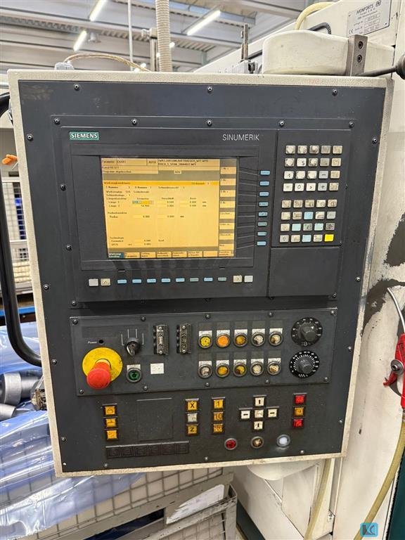 turning diameter:500 mmturning length:1000 mmcontrol:Siemens 840 D spindle:42 / 28 kWspindle turning speed - stepless:31 - 4000 1/minmax. torque on the spindle:345 Nmc-axis:360000 x 0,001° feeds -stepless-:0 - 10000 mm/minrapid traverse:10000 mm/minturret stations / rotary tool stations:12/12 VDI 40 RPM of rotary tools:2000 1/mindiameter of quill:90 mmquill stroke:80 mmtailstock quill taper ISO:SK 30 Tailstock Travel:600 mmPower rotary tools:3,5 kW:22,5 NmRotary tool holders:4 ax./ 4 rad. spindle passage:66 mmtotal power requirement:30 kWweight of the machine ca.:7,5 tdimensions of the machine ca.:8x 3 x 4 m