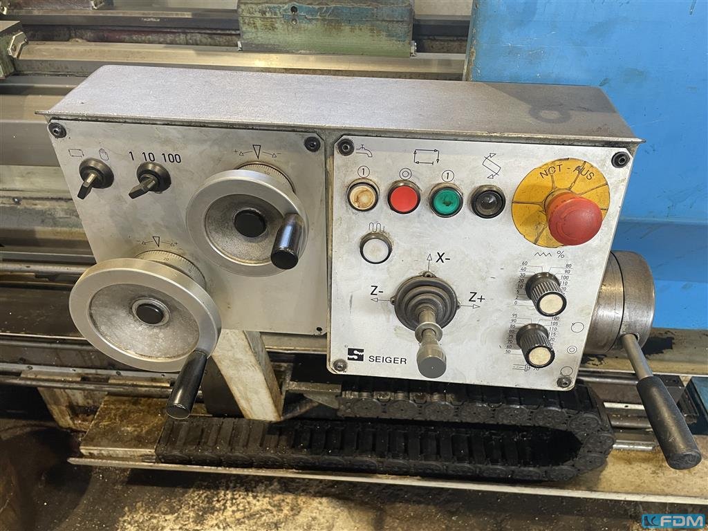 turning diameter:500 mmturning length:1500 mmturning diameter over bed slide:290 spindle bore:71 mmturning speed range:3 - 2800 U/minrapid speed:10 / 5 m/minfeed speeds:1 - 2000 mm/mintotal power requirement:22 kWweight of the machine ca.:3,2 tdimensions of the machine ca.:3,0 x 1,6 x 2 mwith Teach In controll R&D MTC-KPARAT toolpost 1 fixed steday dia. 100 mm4 jaw face plate dia. 500 mmcoolant attachment