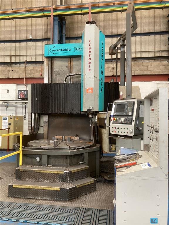 faceplate diameter:4770 mmswing diameter:7000 mmturning height:1000 mmslide stroke:1000 mmworkpiece weight max.:100000 kgfaceplate turning speed range:2 - 20 U/minfeed speeds:1 - 10000 mm/minrapid traverse:10 m/minram head dimension:250 x 250 mmmain drive:100 kWtotal power requirement:200 kWwith CNC SIEMENS 840 D2 Vertical Supports with toolchanger 12 pockets C-axis and driven tooling SK 50 37 Kw 3000 rpmChip conveyor and coolant attachment