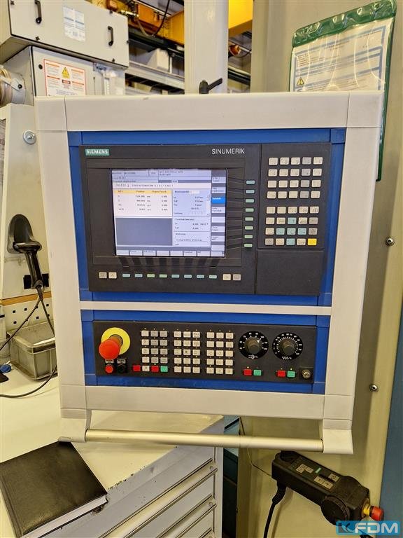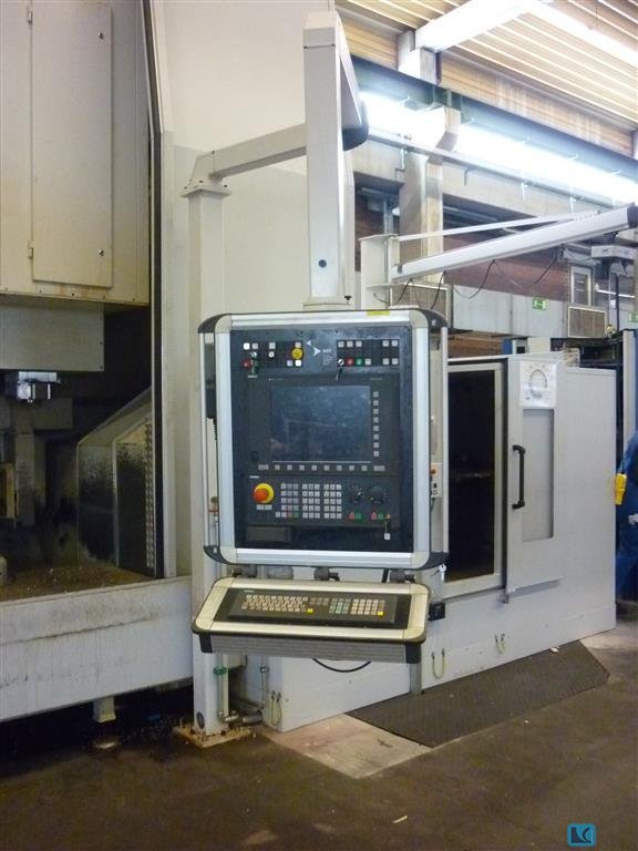 faceplate diameter:1000 mmswing diameter:1600 mmturning height:1200 mmmain drive:75 kWfaceplate speeds from - to:7 - 800 U/minmilling motor:25 kWmilling head speed:7 - 3000 U/minmilling spindle - taper:ISO 50cross rail adjustment - vertical:800 mmram head dimension:240 x 240 mmweight of the machine ca.:40 todimensions of the machine ca.:9 x 7,8 x 6,0 mMachine general overhould in 2004 and equiped with Siemens 840 D control- tool changer rack magazine- C-axis, live tooling, - Transmit function electronical Y-axis- angular milling head - complete splash housing - coolant device, chip conveyor
