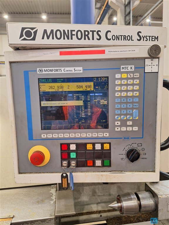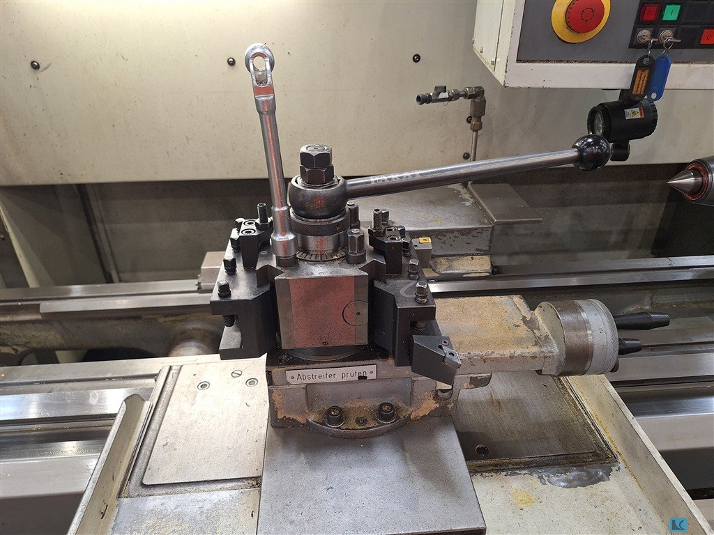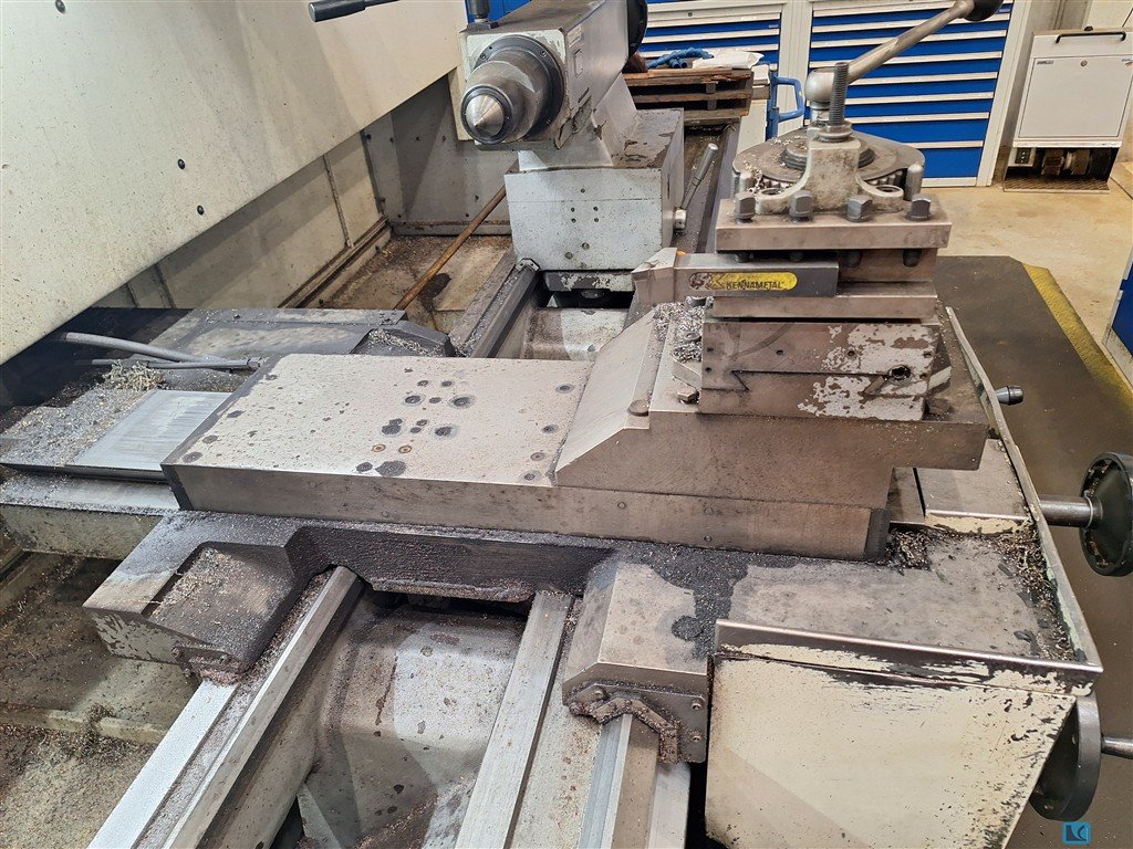 turning diameter:800 mmturning length:2965 mmmax. turning dia. over saddle:520 mmspindle bore:92 mmturning speed range:3 - 1800 U/minspindle head:Größe 11 total power requirement:37 kWweight of the machine ca.:6,5 tdimensions of the machine ca.:5,2 x 2,2 x 1,9 mTeach In Control MTC-K3-jaw chuck ROTAS Dia. 400 mmface plate RÖHM Dia. 630 mm4-station toolholder system PARAT 1 fixed steady coolant attachment and chip conveyor