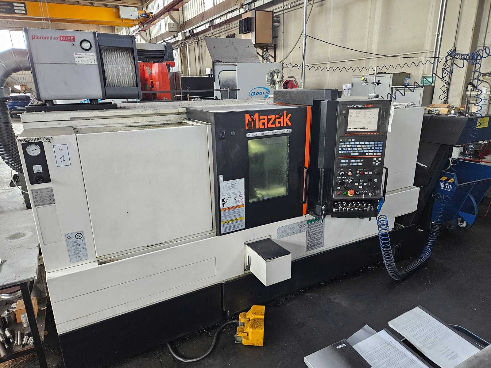 turning diameter:420 turning length:1230 mmswing over bed:700 mmswing diameter over slide rest:550 mmcentre distance:1390 mmy-axis:+/- 60 mmturning speeds:3500 1/minturret (x-stations):12 power capacity:22 / 18,5 kW:1 / 12 x BMT rapid traverse x + z axis:20 / 24 m/min:76 mmtotal power requirement:50 kVAweight:7,8 tdimensions of the machine ca.:4,10 x 2,05 x 2,21 mCNC lathe with Y-Axis and driven tools,C-axis,tool eye,hydraulic 3-chaw-juck D= 250 mm,reinforced pump 15 bar,pressure-compensated clamping cylinder ,2 step clamping pressure,prepared for steady (without steady),progr. tailstock (dragging device),live tool device (3,7 kW, 3.000 rpm),chipconveyor,1 pcs. live tool includedapprox. 15.500 working hours