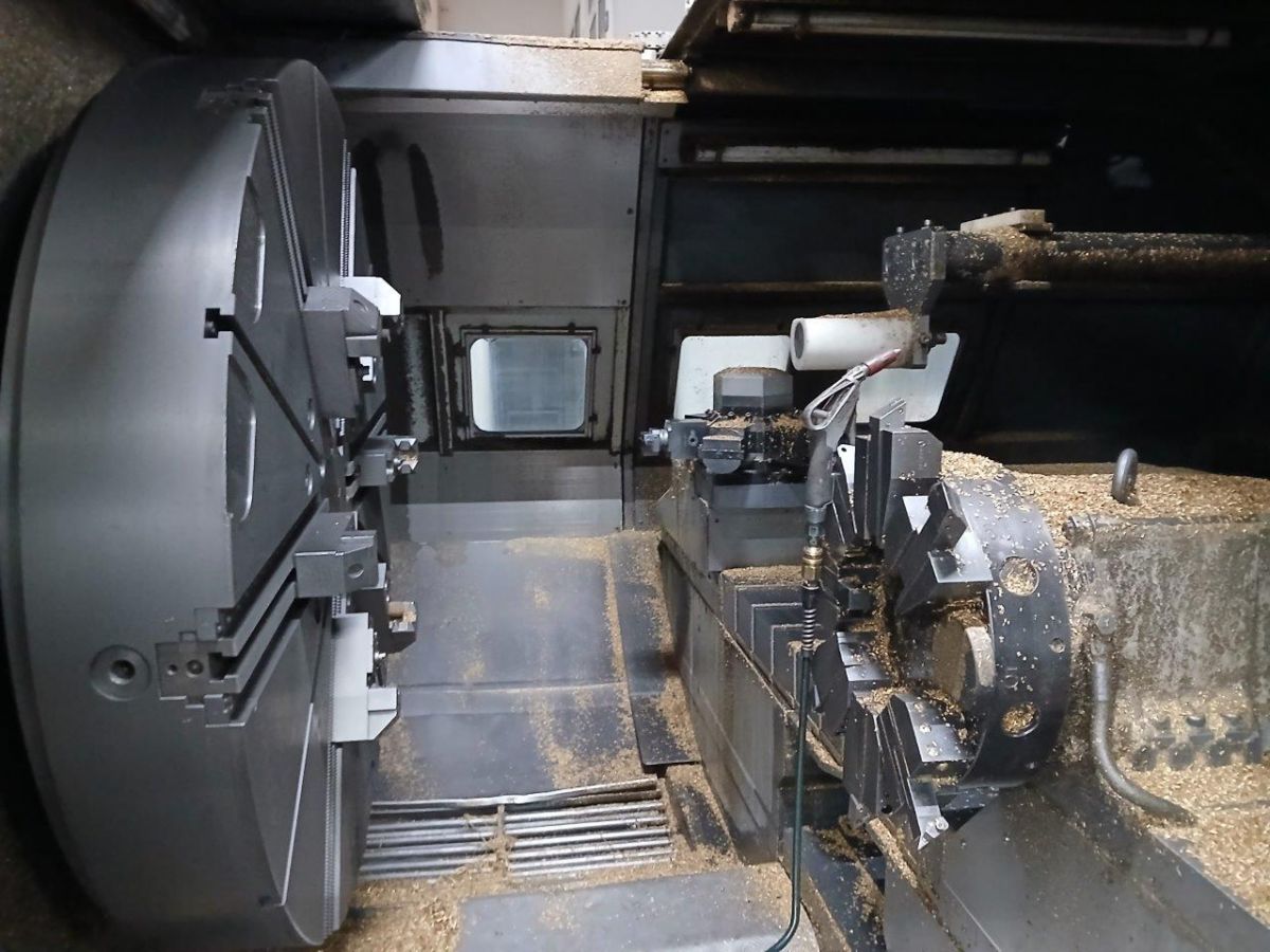 turning diameter: 376 mmturning length: 1245 mmcontrol: FANUC i-Series turning diameter over bed: 376 mmx-travel: 230 mmz - travel: 1350 mmrapid travel x/y/z: 24/30 m/minmain spindle speeds:: 2800 spindle motor: 35 / 26 kWmax. torque on the spindle: 1613 Nmspindle passage: 102 mmtotal power requirement: 33,91 Kvaweight of the machine ca.: 7 tdimensions of the machine ca.: 4,6 x 2,11 x 2,3 mEquipped with:- Fanuc i-Series CNC control- C-axis- 3-jaw chuck, 304 mm diameter- 12-station tool turret- Tailstock- Chip conveyor- CEOnly 2,300 spindle hoursThe data for this ad was created with ModulMWS - the software solution of LogoTech oHG.