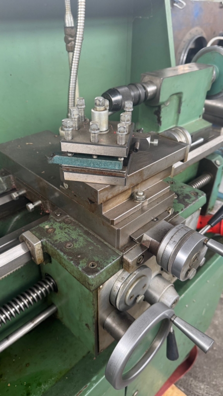 bed width: 350 mmturning length: 1.000 mmcontrol: Manual plus 620 Heidenhaingreates pass round over bed: 430 mmSwing dia. over traverse guideway: 220 mmMain spindle:: turning speed range - main spindle: 1 - 3.600 min/-1power capacity - main spindel: 9 / 11 kWmax. Torque: ca. 200 Nmspindle head: DIN 55027 / 6 spindle diameter in front bearing: 110 mmspindle bore: 80 mmusable bar diameter: max. 80 mmTool Mount:: System: MultiFix Shank diameter: 20 x 20 mmaxis stroke:: x-axis: 230 mmz-axis: ca. 1.000 mmTailstock:: diameter of quill: 70 mmquill stroke: 150 mmtaper of center: MK 5 steady: hollow: fix: 12 -150 mmhollow: var: 12 -125 mmfeeds:: rapid traverse: X: 10 / Z: 7 m/minfeed power: X: 4 / Z: 5 kNtotal power requirement: - kWweight of the machine ca.: 3,2 tdimensions of the machine ca.: 2,8 x 2,1 x 1,9 mDocuments: Tailstock: steady rest: 1x Coolantsystem: Multifix holder: 2x Lat ...