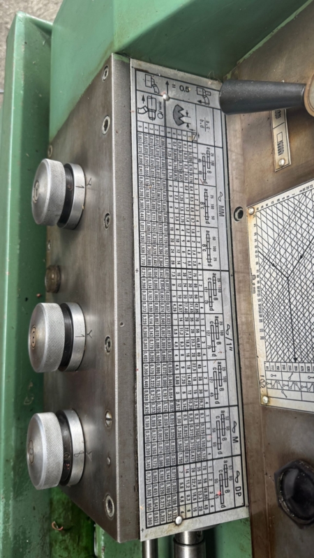 Technical dataMaximum turning length: 1000 mmFeature Typical values: Circulating Ø over bed approx. 500 mmOverdrive Feed: ~8 m/min (X) · ~10 m/min (Z)Quill in tailstock: Ø 80 mm, impact ~180 mm Electrical connection: 3 phasesMain fuse: 25-80ANominal apparent power: 14-24-49 kVAImportant operating elements Emergency stop button for immediate stop Spindle start/stop and speed selection Axis adjustment (X and Z) manually or via program Cycle selection for MANUAL CNC control Feed Start/StopWorkpiece Zero Points & Reference tripweight: approx. 3,000 – 5,200 kg Auction-ID: A1-44739-2