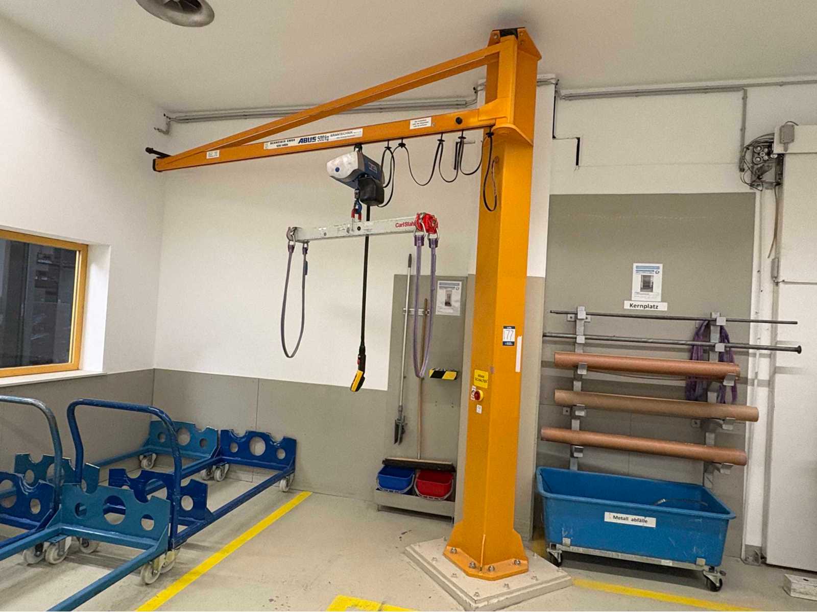 500kg capacity pillar jib crane, S/No 22486, Year 2011, with ABUS electric chain block and Carl Stahl lifting frames Auction-ID: A1-45187-177