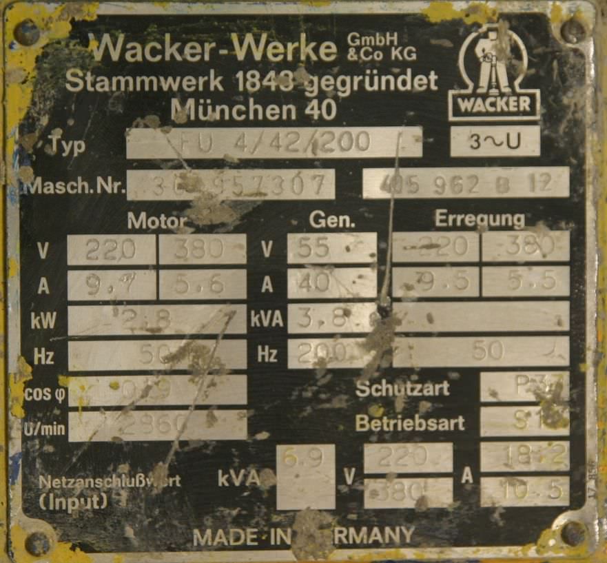 | WACKER | FU 4/200 Sw | 950 EUR | [Nov 2012] |