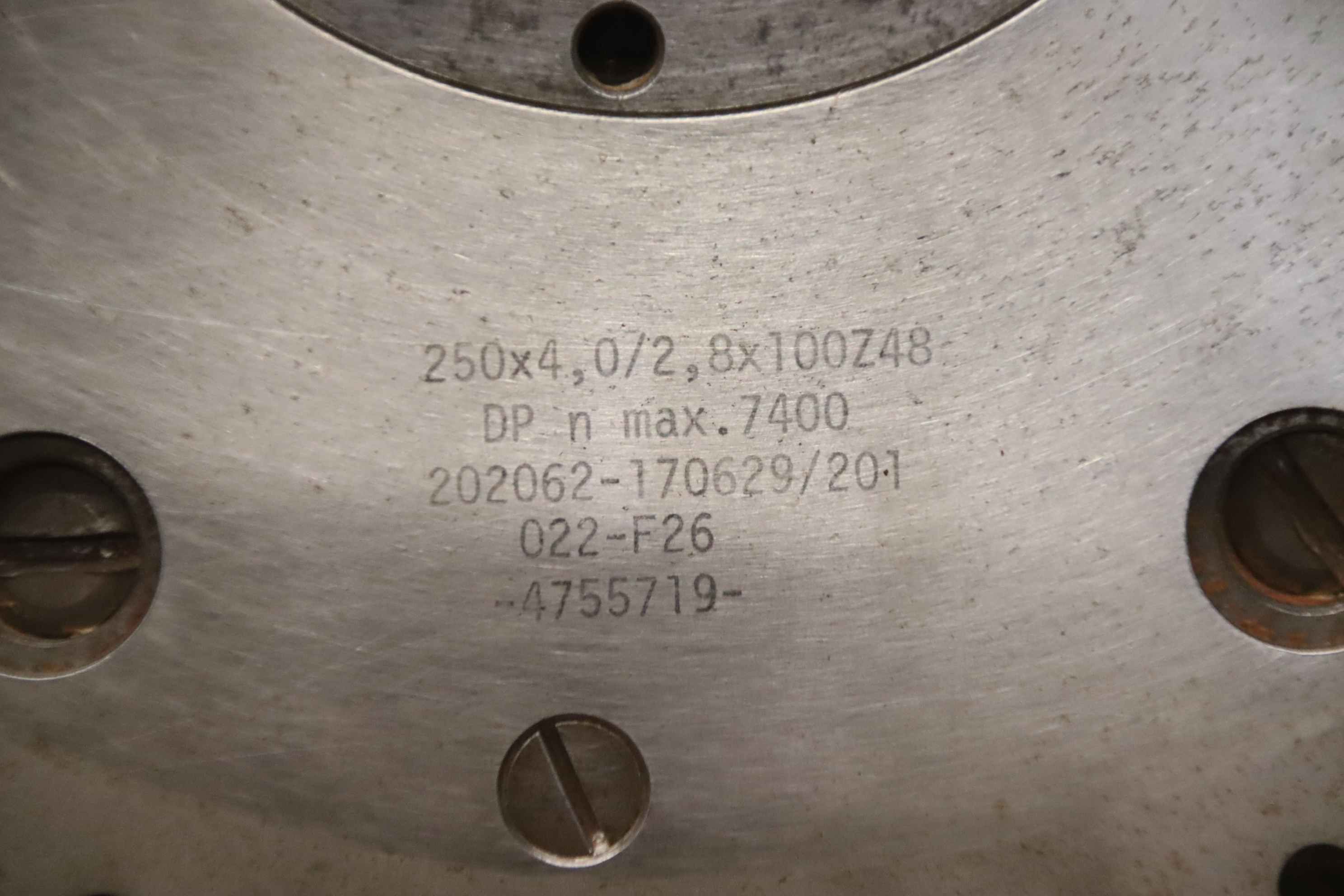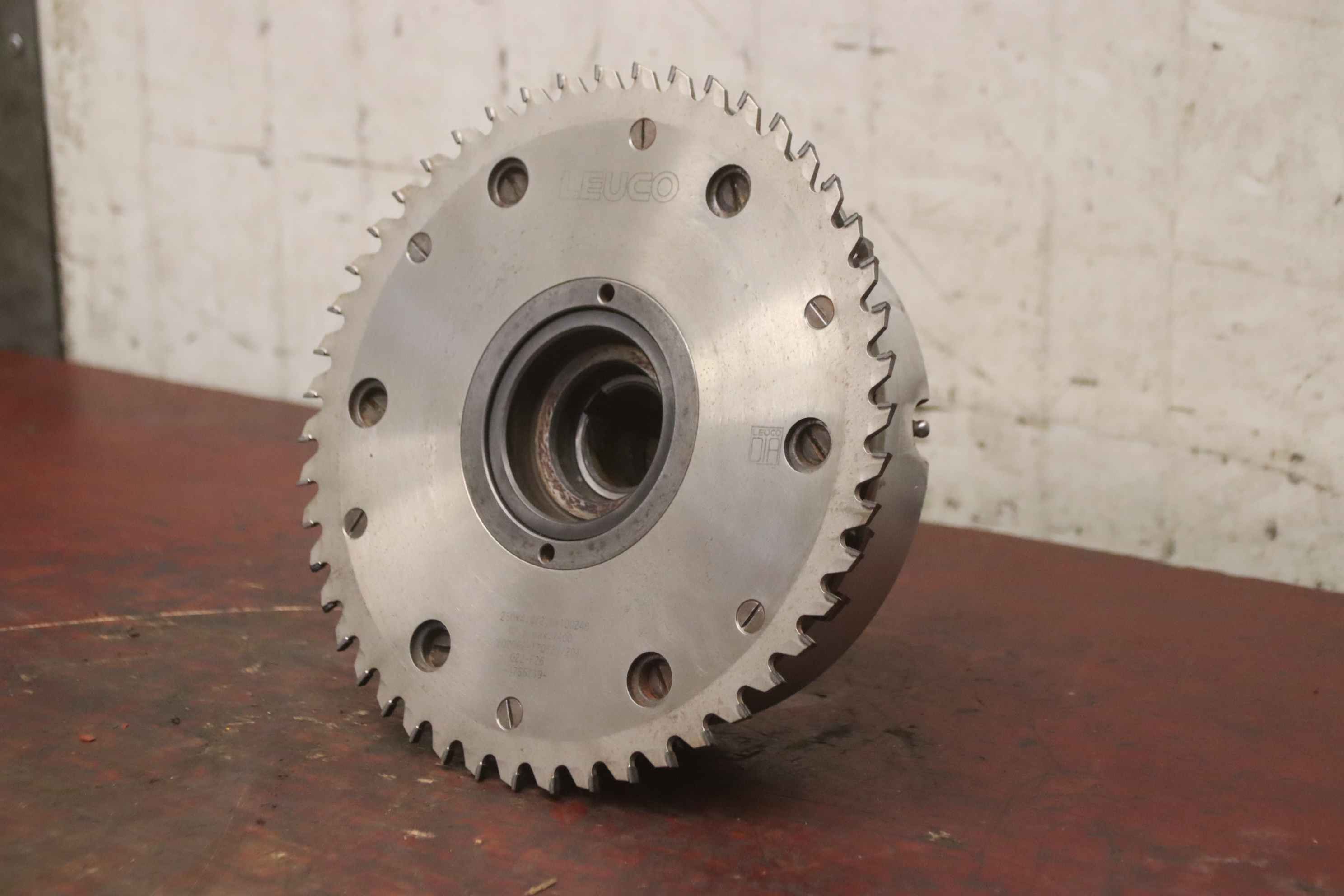 wood milling cutter, milling head, milling tool, wood milling cutter, profile milling cutter-Manufacturer: LEUCO quick clamping system with wood cutter-Hole: Ø 35 x 75 mm-Saw blade: Leuco 250x4.0/2.8x100Z48 202062-Number: 2x recordings available-Price: per piece-Total dimensions: Ø 250 x 90 mm-Weight: 12.5 kg/piece
