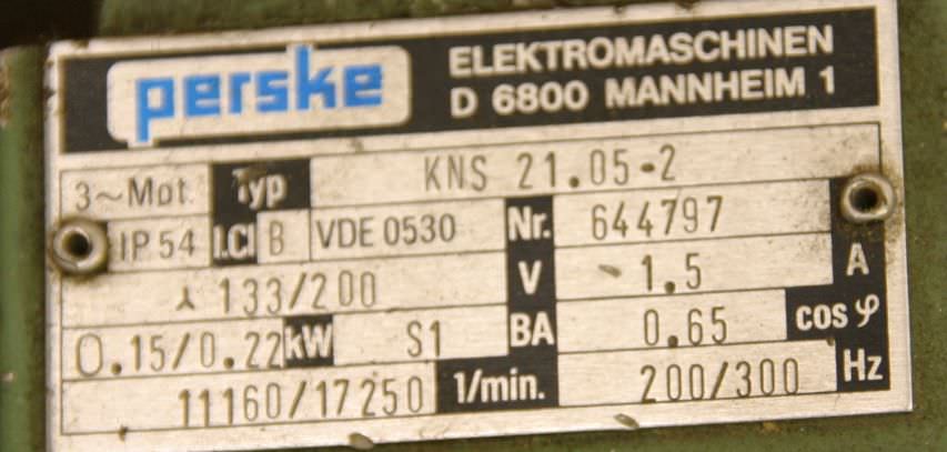 Double-end tenoner, edge processing machine, scoring motor, chipper motor, milling motor, spindle motor-Manufacturer: Perske, milling motor type KCS 71.14-2 D-Power: 4.4 kW 2820 rpm-Voltage: 400 V / 50 Hz-Mounting shaft: Ø 30 x 40 mm / M30 x 3,5-Number: 2x motor available-Price: per piece-Dimensions: 515/230/H150 mm-Weight: 37 kg/piece