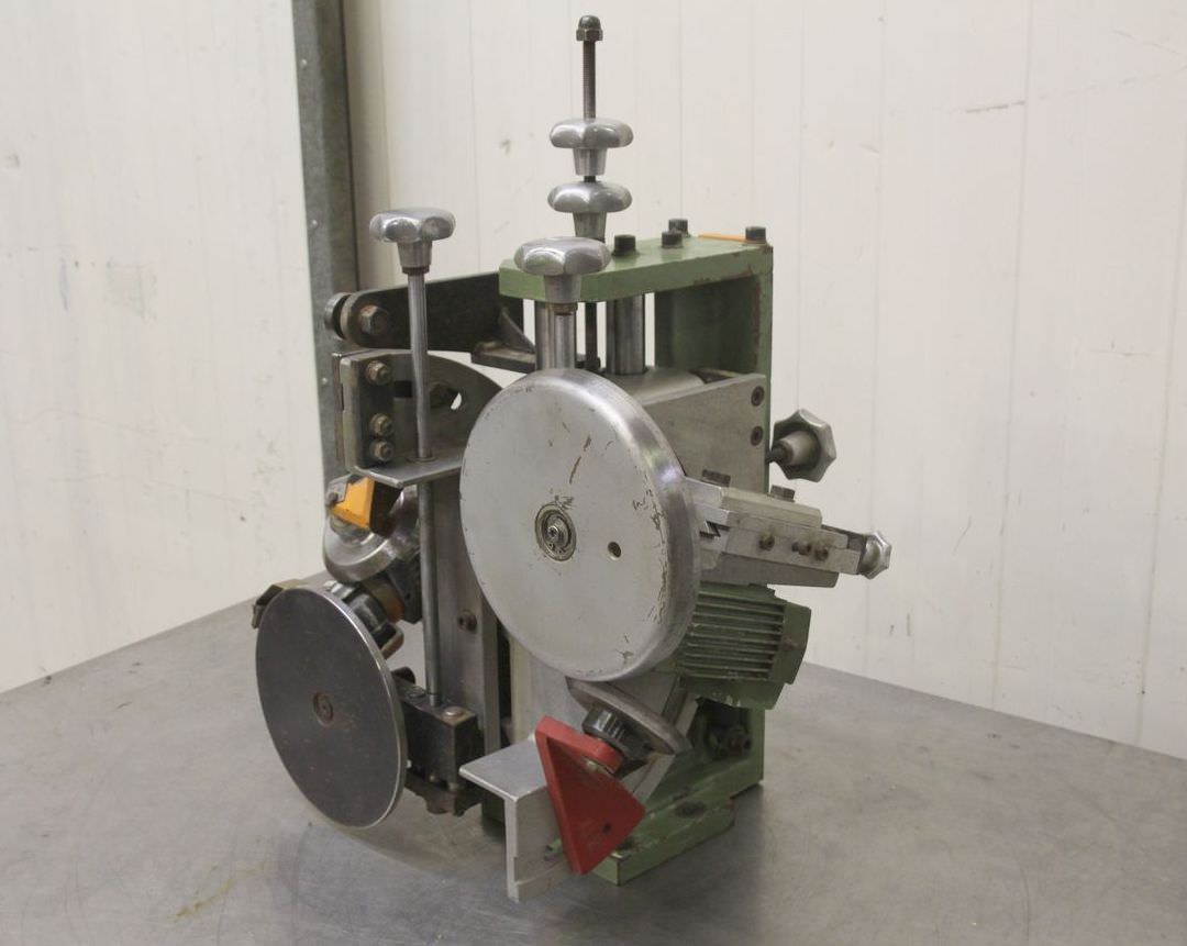 Aggregate kit, format processing unit, chipping unit, milling unit, form milling unit, jointing milling unit, trimming unit, double-end tenoner, edge processing machine, scoring motor, chipping motor, milling motor for edge processing machine-Manufacturer: Homag, milling unit for edge processing machines with Perske motors-Milling units: pivoting-Motors: 2 x Perske DKNS 502/2-Power: 0.15 kW-Frequency: 200 Hz-Speed: 10400 rpm-Number: 1x milling unit available-Dimensions: 470/410/H600 mm-Weight: 60 kg