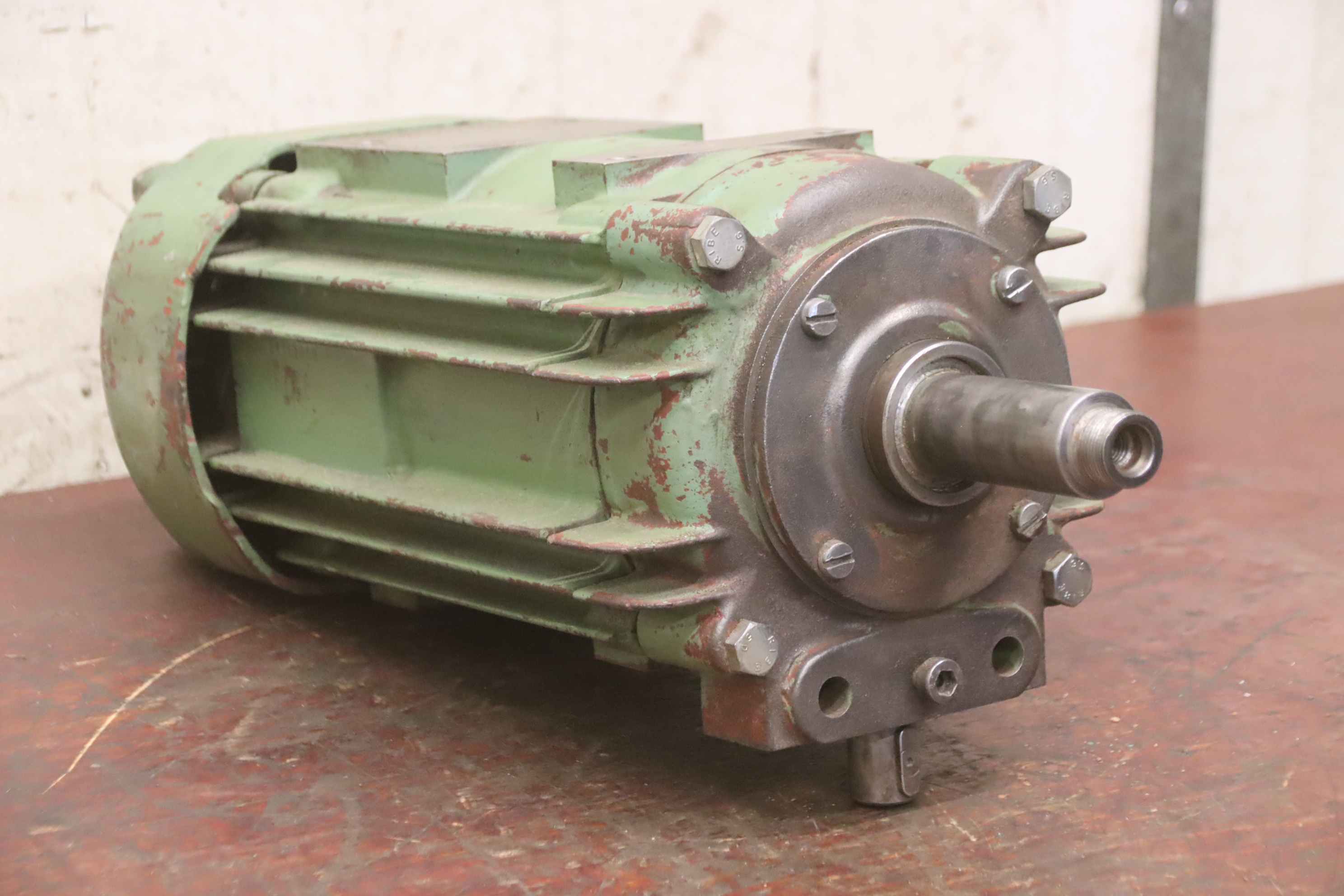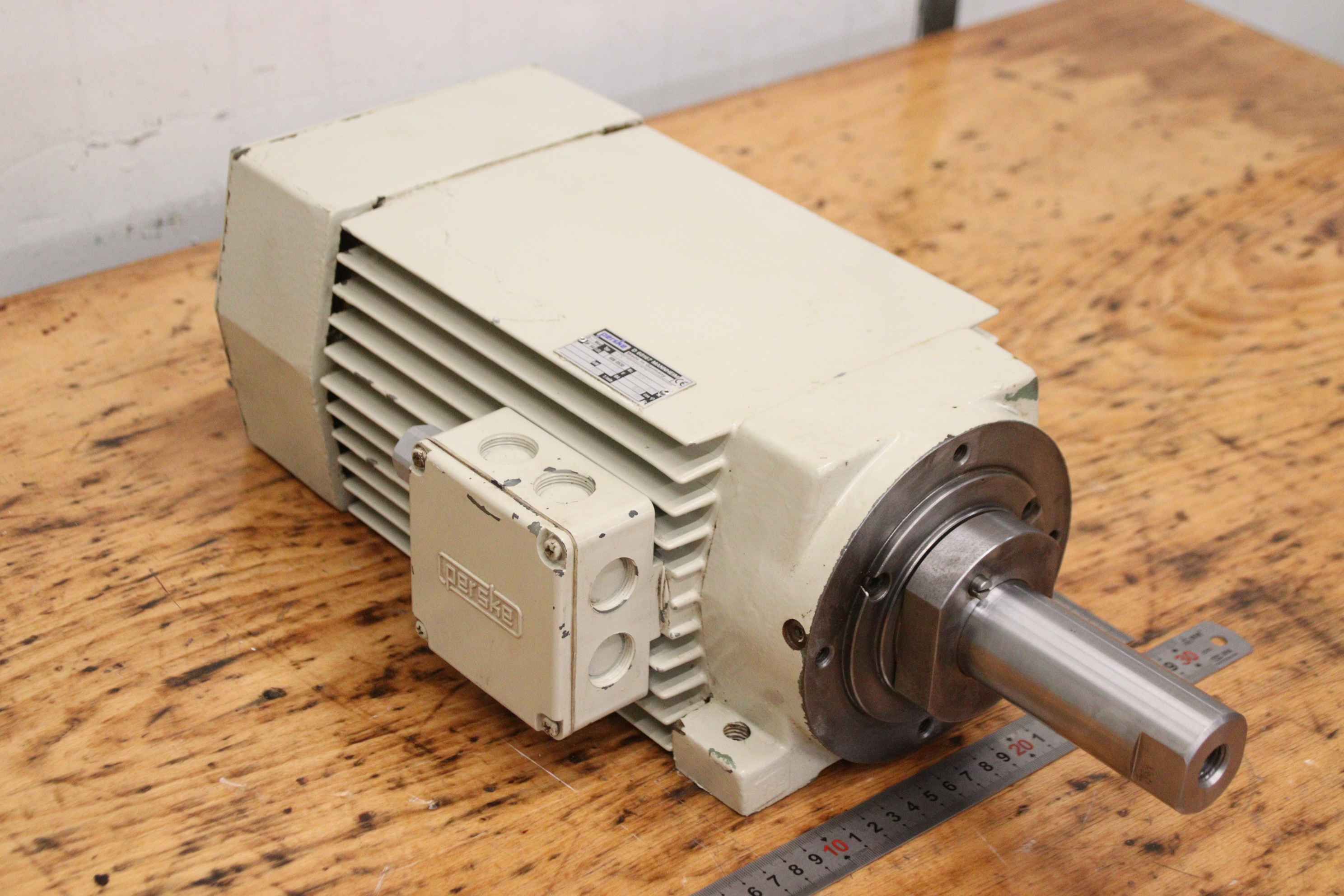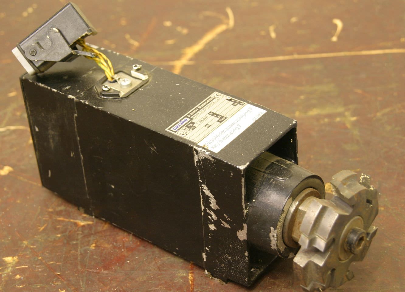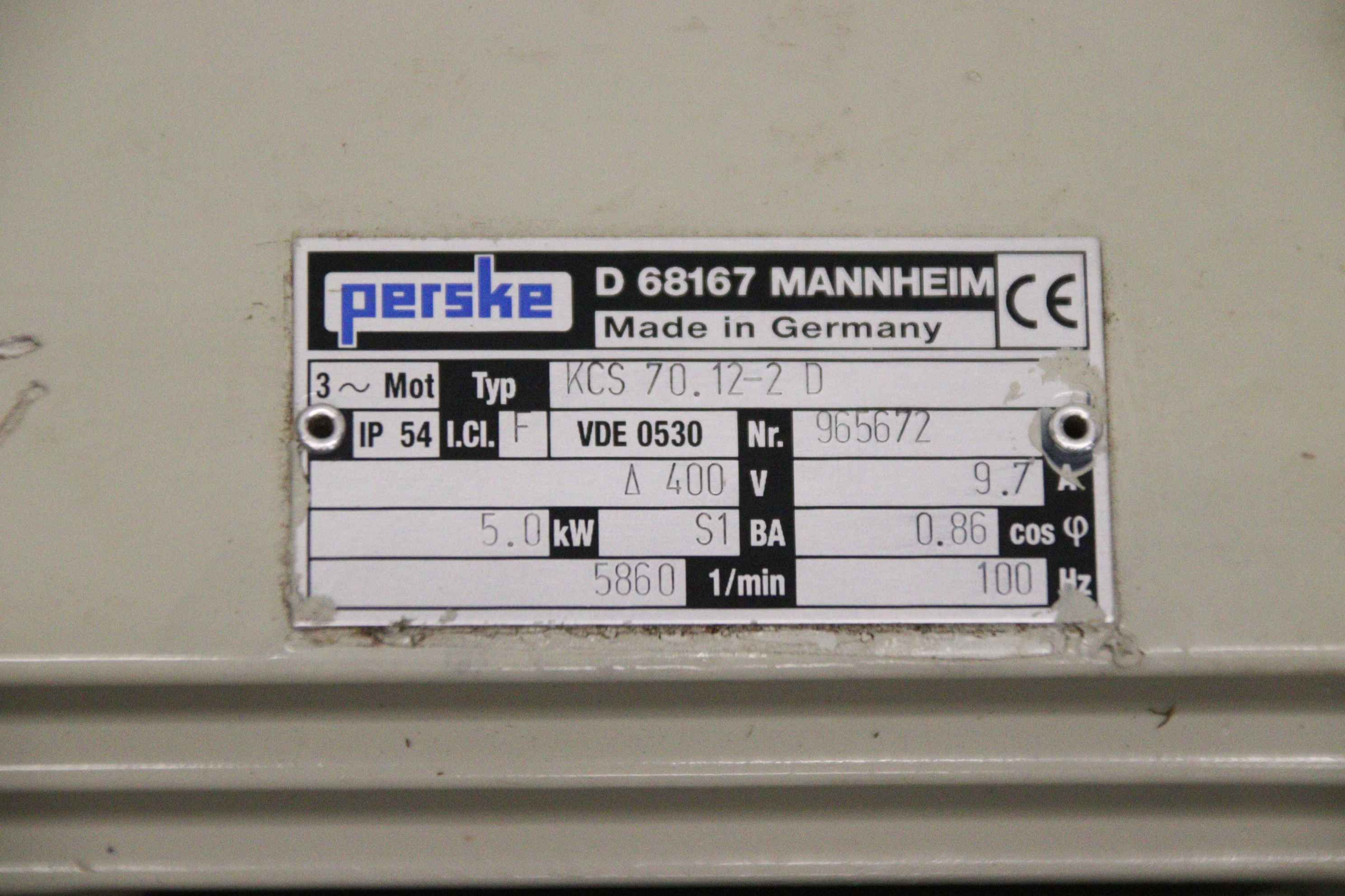 Double-end tenoner, edge processing machine, scoring motor, chipper motor, milling motor, spindle motor-Manufacturer: Perske, milling motor type KCS 70.12-2 D-Power: 5.0 kW 5860 rpm-Voltage: 400 V / 100 Hz-Mounting shaft: Ø 40 x 80 mm-Number: 4x motor available-Price: per piece-Dimensions: 480/232/H150 mm-Weight: 34 kg/piece