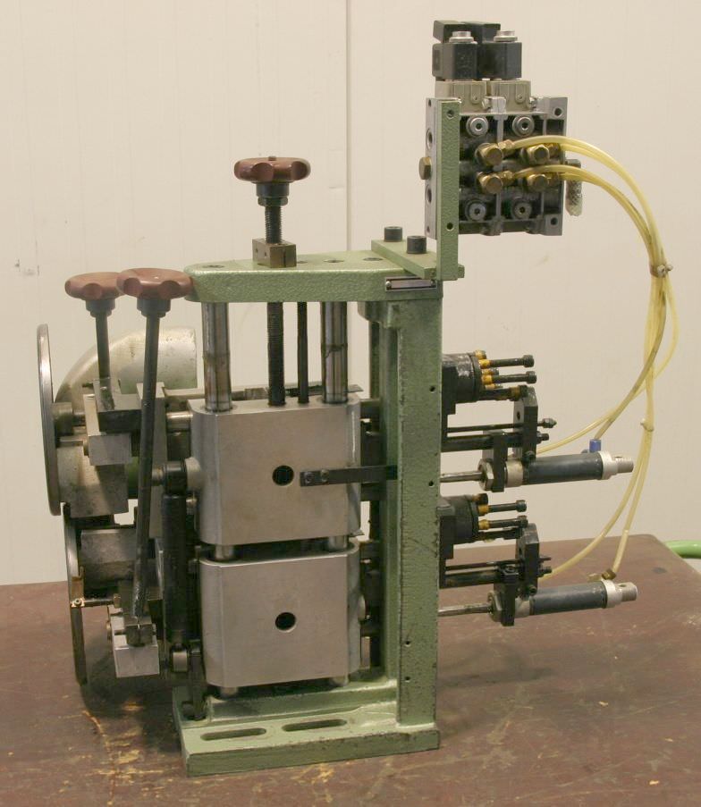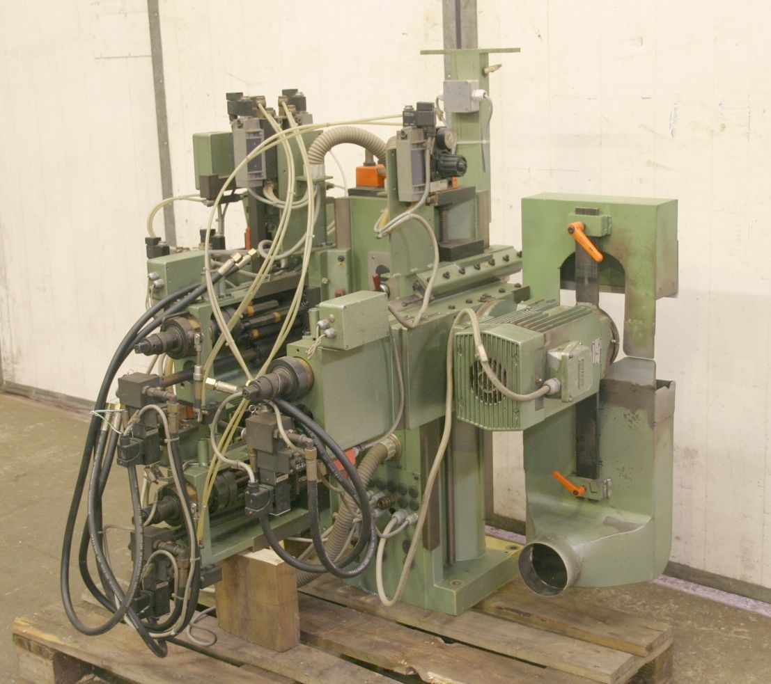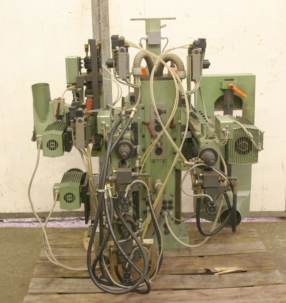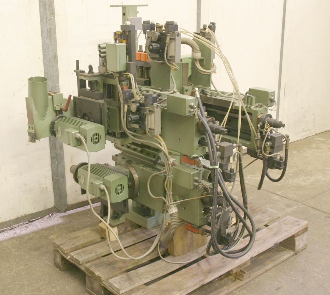 Double end profiler, edge processing machine, flush milling cutter, edge milling cutter, spindle motor, milling motor -1x motor: 1/1.5 kW 2670/5710 rpm at 50/100 Hz -1x motor: 5.5/8 kW 2870/5880 rpm at 50/100 Hz -Motor: mounted on guides -Motors: swiveling -Mill: with inserts -Dimensions: 900/1100/H1000 mm -Weight 274 kg