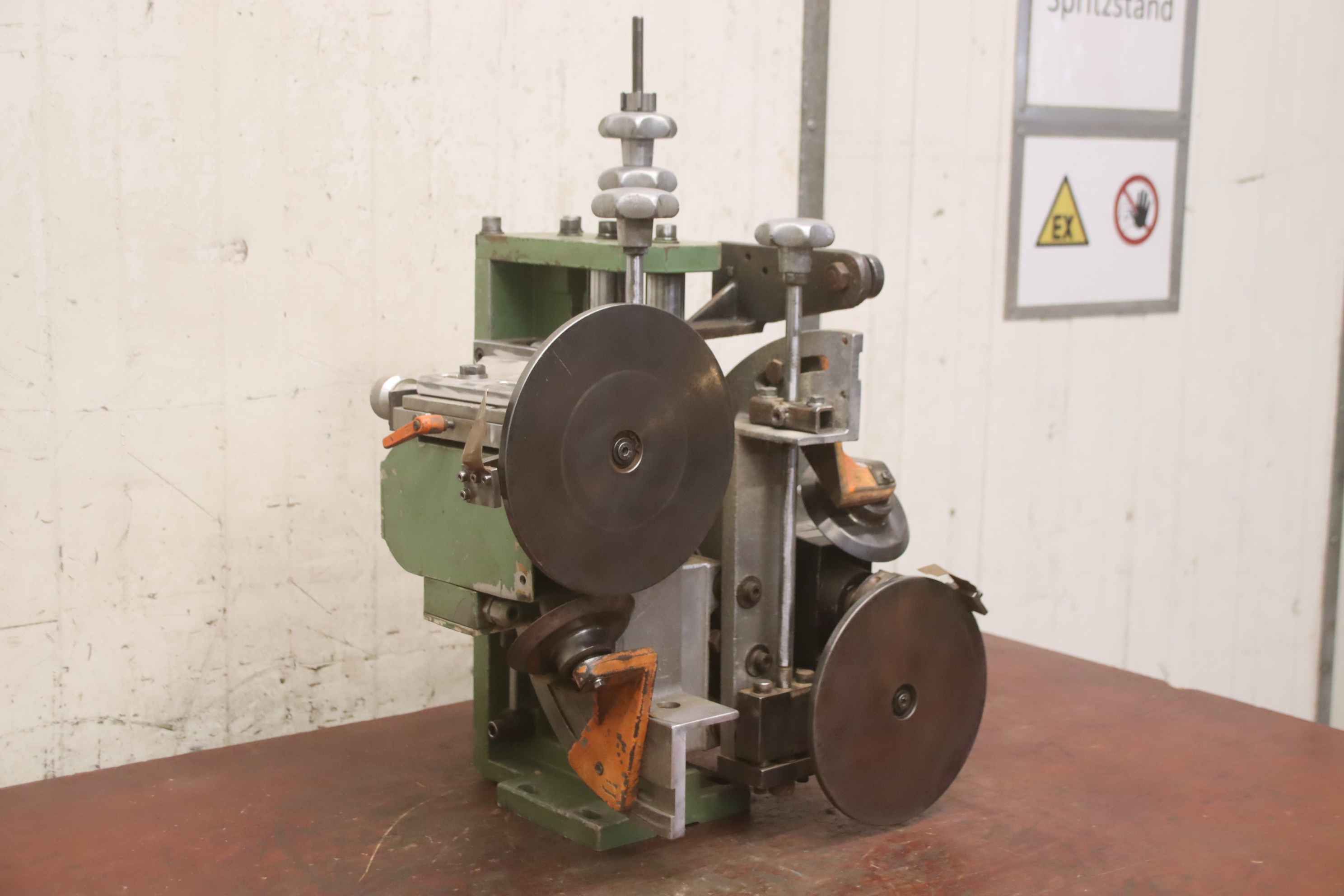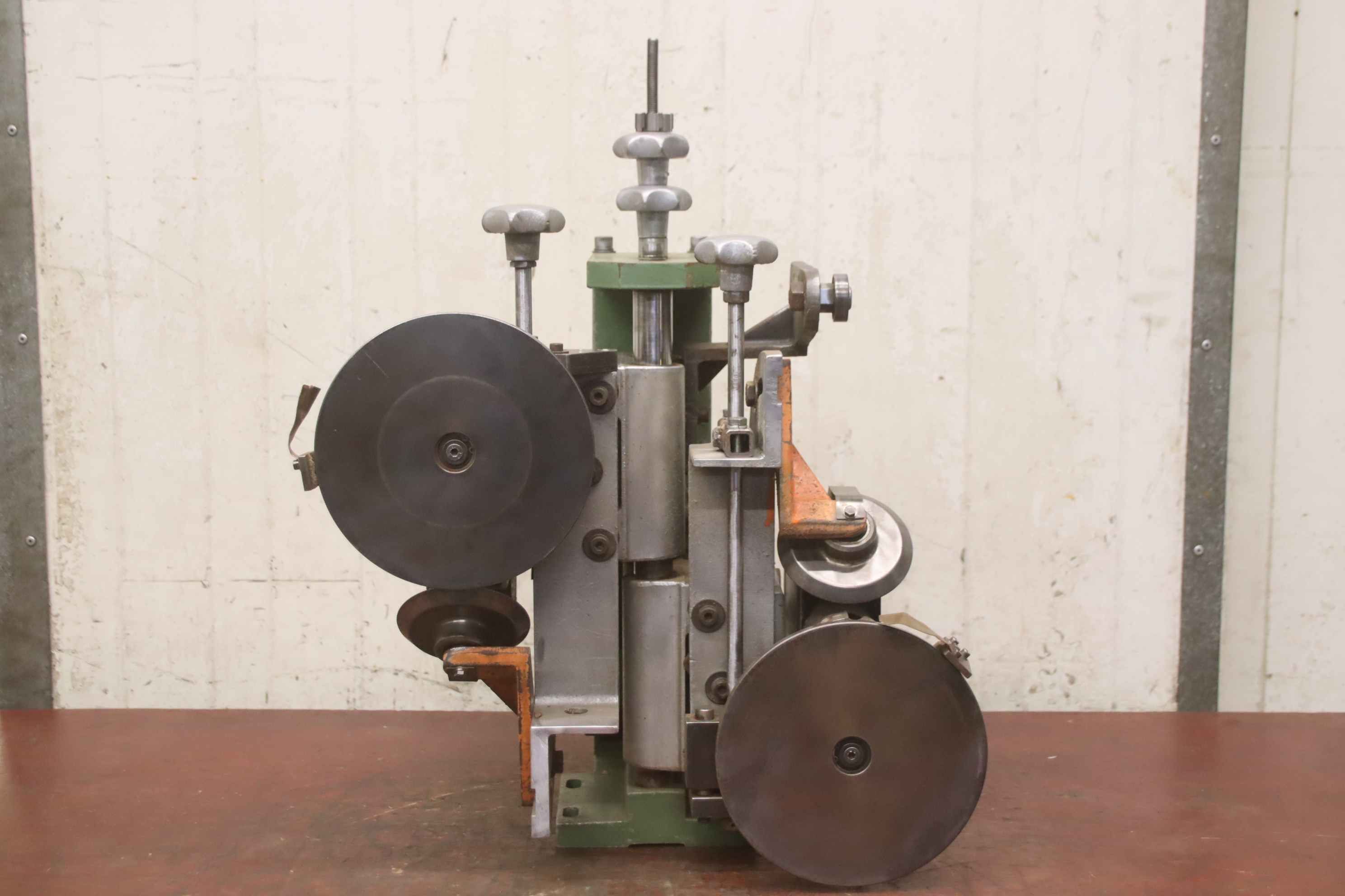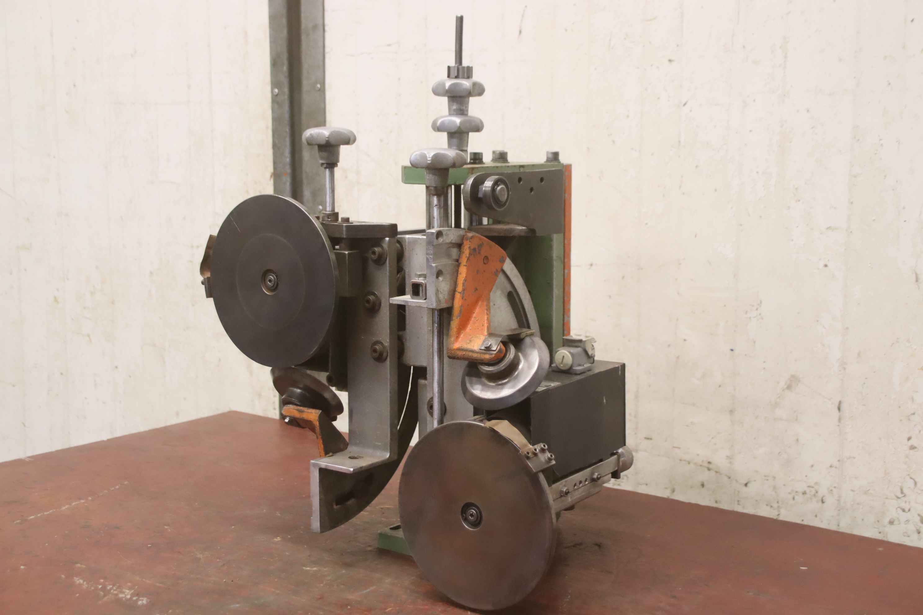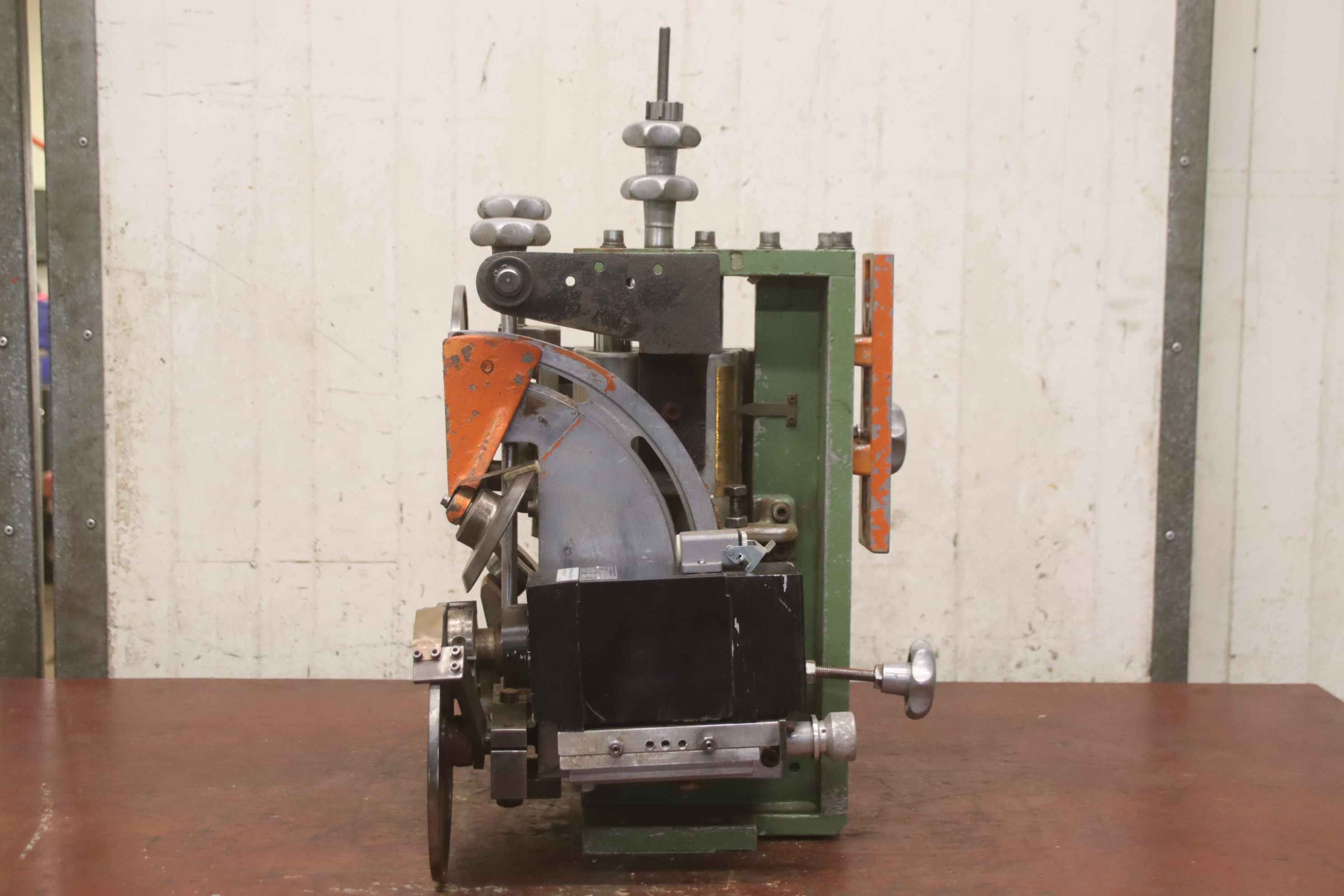 Double end profiler, edge processing machine, flush milling cutter, edge milling cutter, spindle motor, milling motor -1x motor: 1/1.5 kW 2670/5710 rpm at 50/100 Hz -1x motor: 5.5/8 kW 2870/5880 rpm at 50/100 Hz -Motor: mounted on guides -Motors: swiveling -Mill: with inserts -Dimensions: 900/1100/H1000 mm -Weight 274 kg