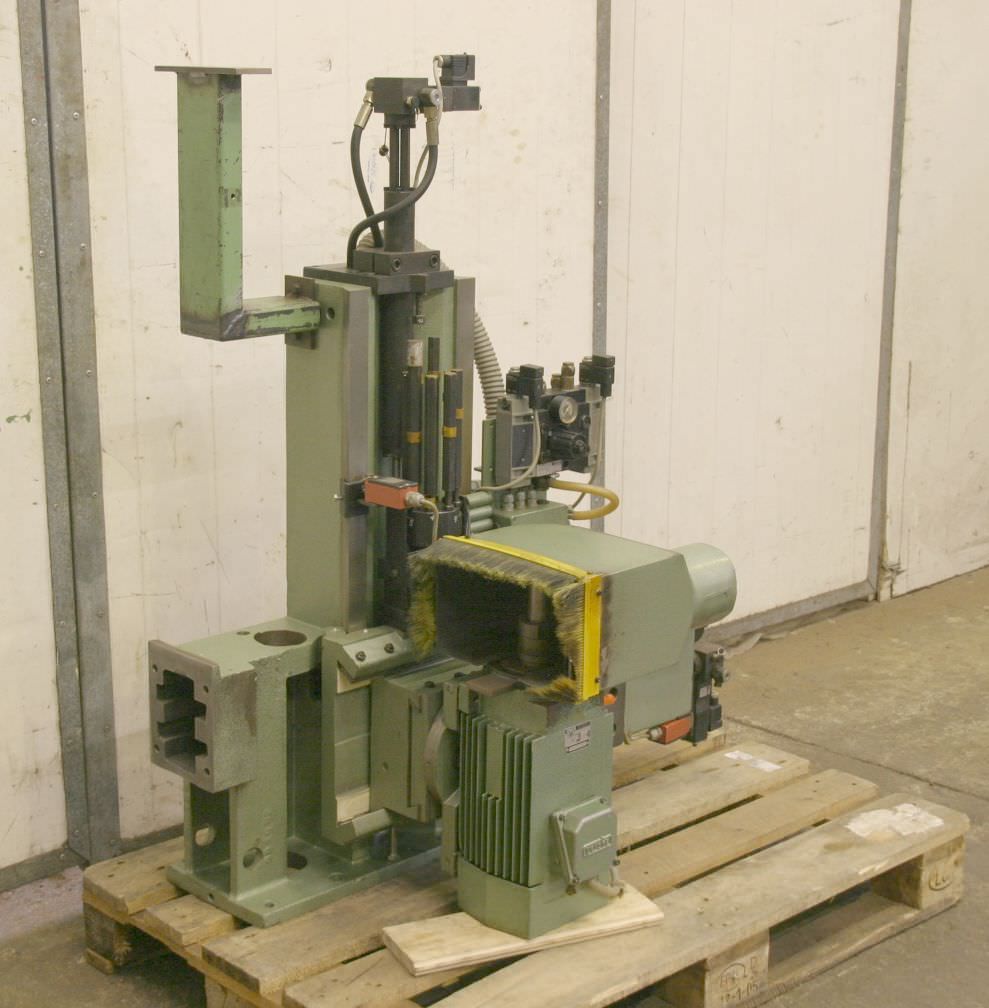Finishing unit, buffing unit, modular unit kit, format processing unit, double-end profiler, edge processing machine, after the scraper for edge processing machine -HOMAG finishing unit for cleaning agent application with buffing device for disposal of glue residue on PVC edges -with oscillation -Swiveling -side: adjustable -height: adjustable -Number: 4x units available -Price: per piece -Dimensions: 580/350/H460 mm -Weight: 28 kg