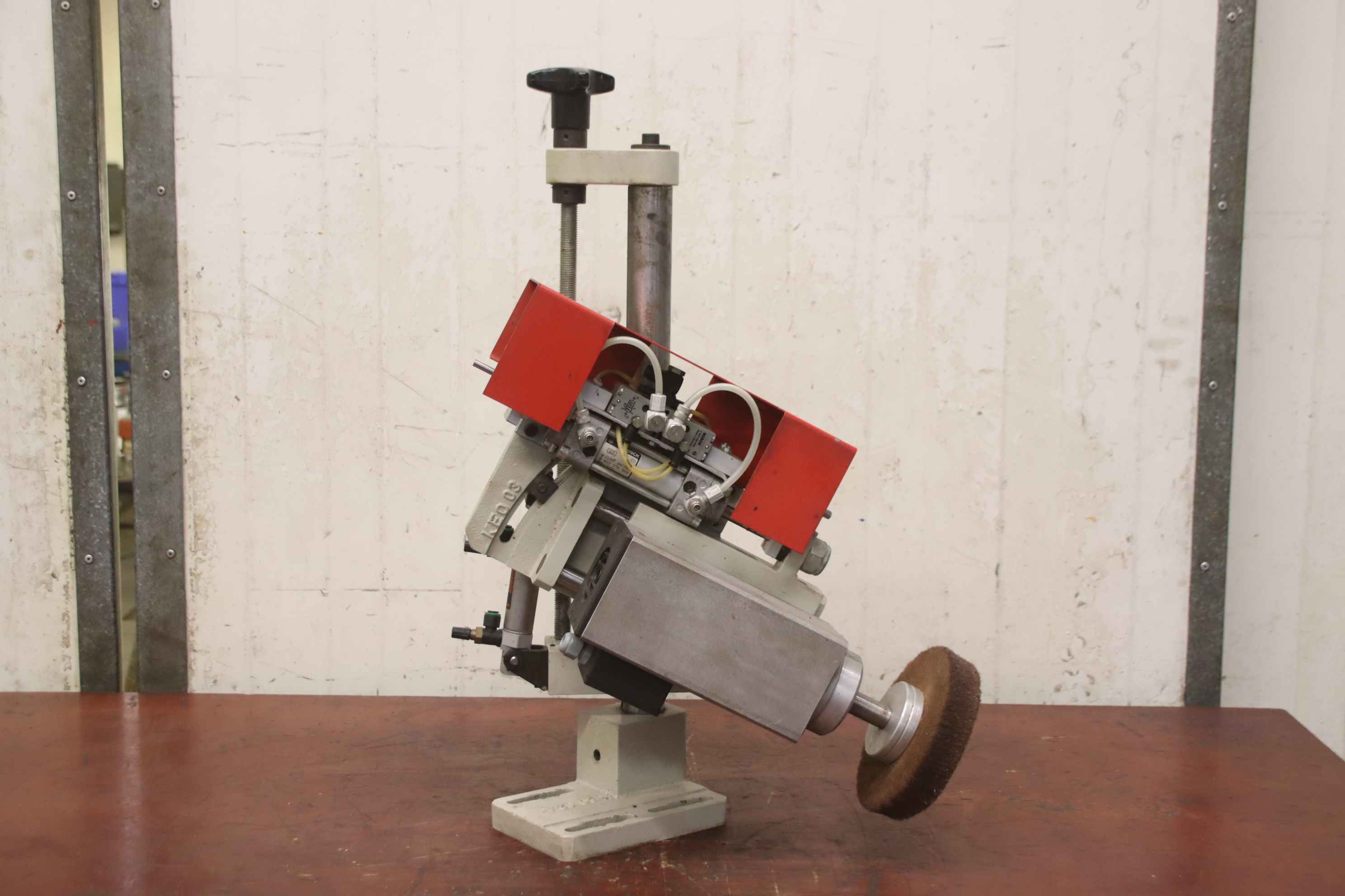 Finishing unit, buffing unit, modular unit, format processing unit, double-end tenoner, edge processing machine, plastering unit -Manufacturer: Paul OTT, Finishing unit from edgebanding machine U 206 -Type: KEO-04 -Motor: 0.3 kW -Speed: 1450 rpm - laterally adjustable -Height: adjustable -Number: 2 units available Price: per piece -Dimensions: 400/280/H660 mm / 480/290/H660 mm -Weight: 35 kg/ 36 kg